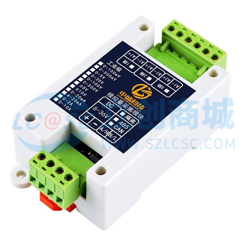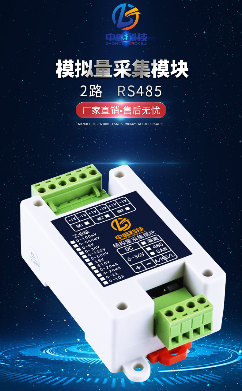 电压电流模拟量采集模块0-10V/4-20mA转485隔离工业级Modbus中盛 2路4-20mA/0-20mA