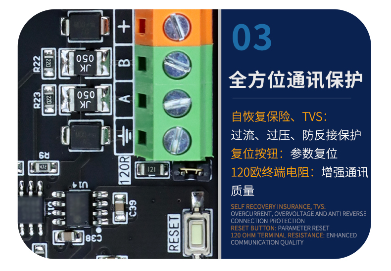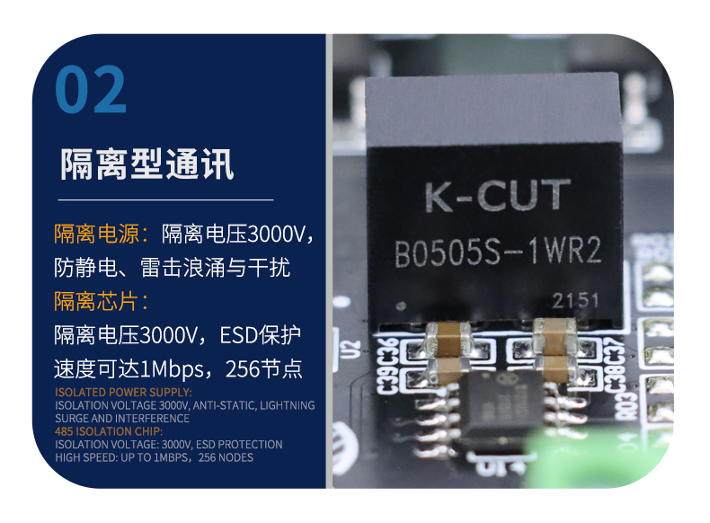 2 工业级设计,具备3000V隔离保护(电源与通讯隔离),抗静电、雷击浪涌与电磁干扰,适应复杂工业环境