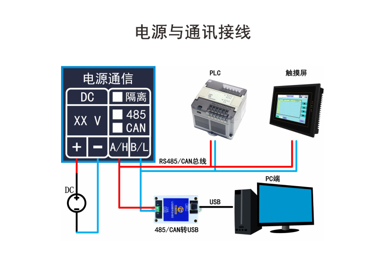 1 2路模拟量采集,支持4-20mA/0-20mA电流信号输入,兼容Modbus RTU协议与RS485通讯,可与PLC、触摸屏、PC等设备互联