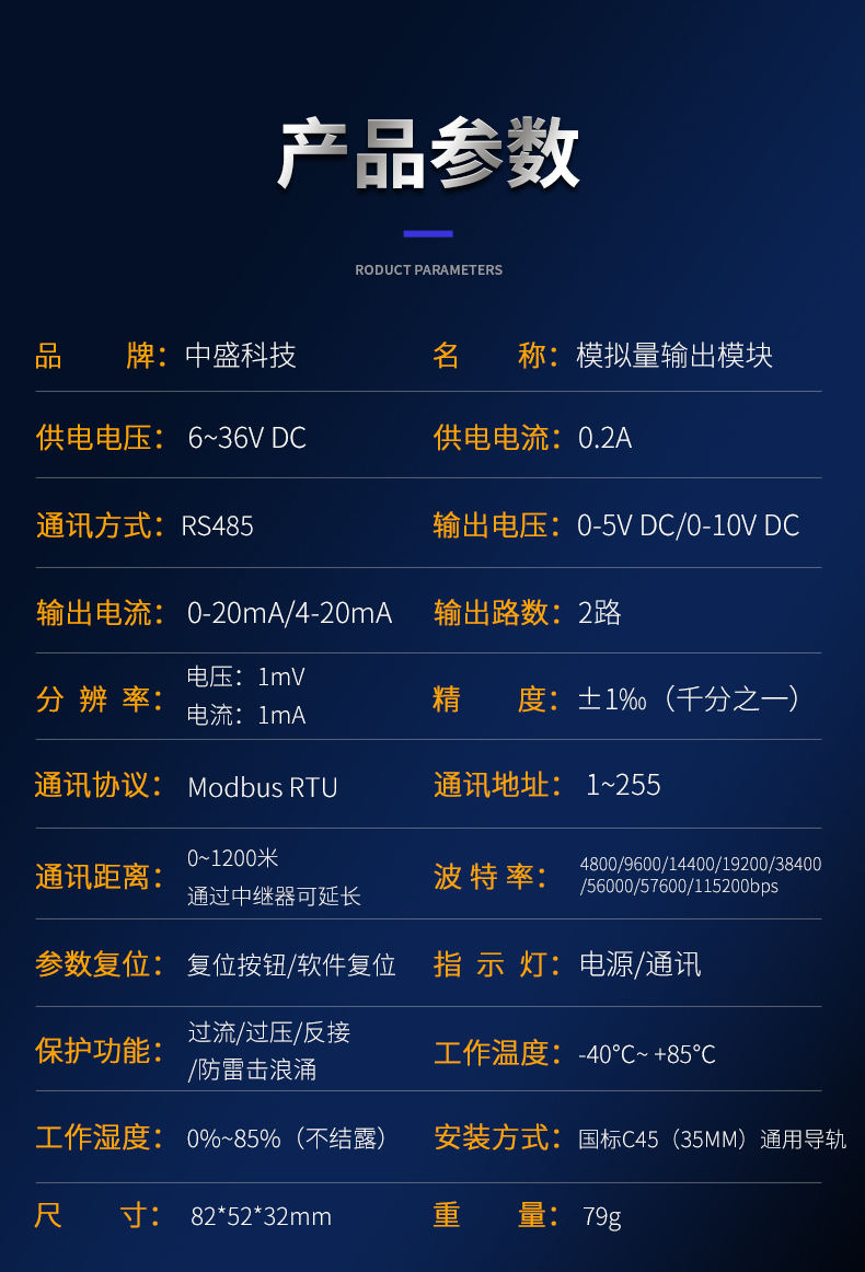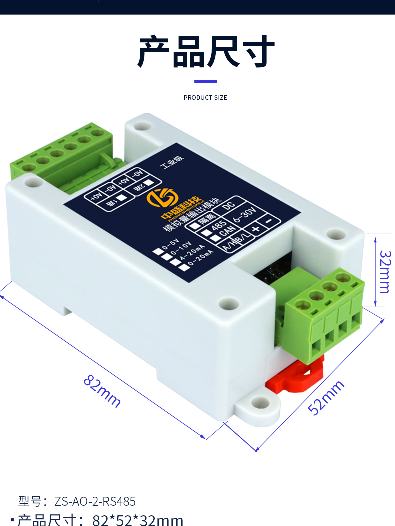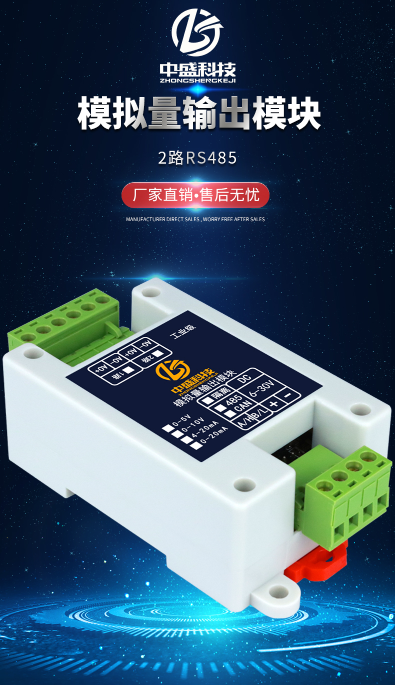 485转模拟量输出电压电流输出4-20mA 0-5V 0-10V工业级Modbus中盛 2路0-10V