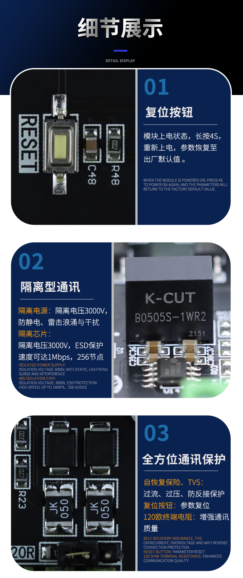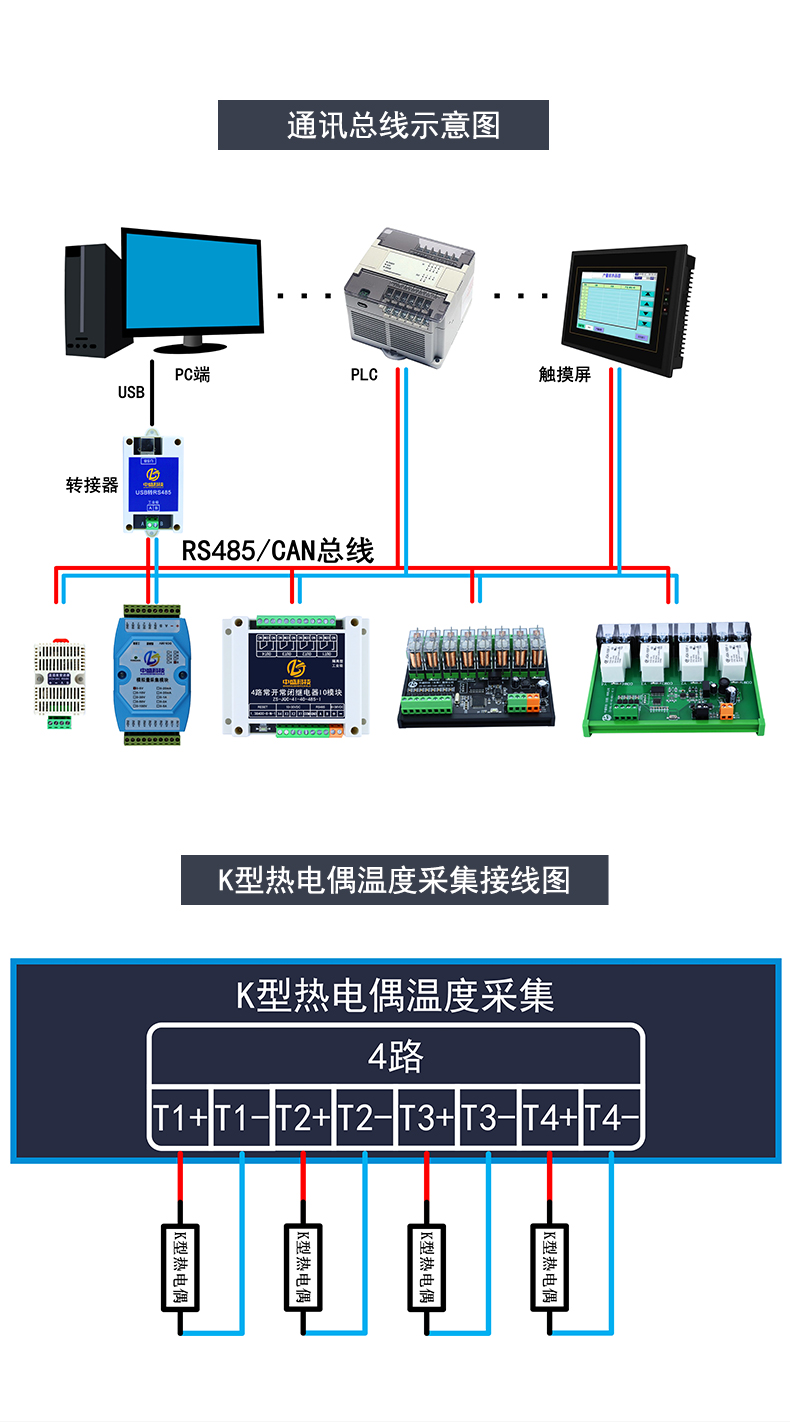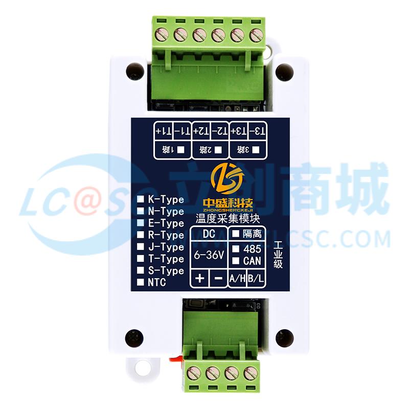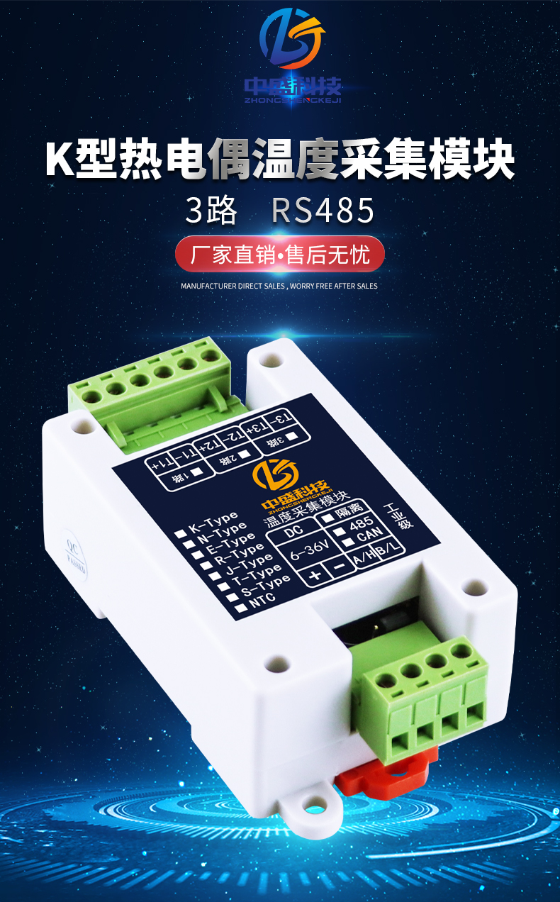 K型热电偶温度采集模块RS485隔离工业级铂热电阻变送器Modbus中盛 3路(隔离型485)