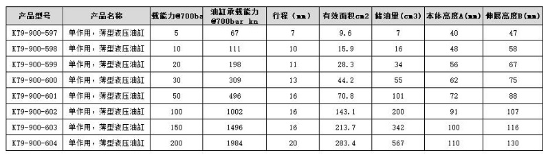 Ansell(安司耳) KT9-900-604 单作用,薄型液压油缸具有以下特点: