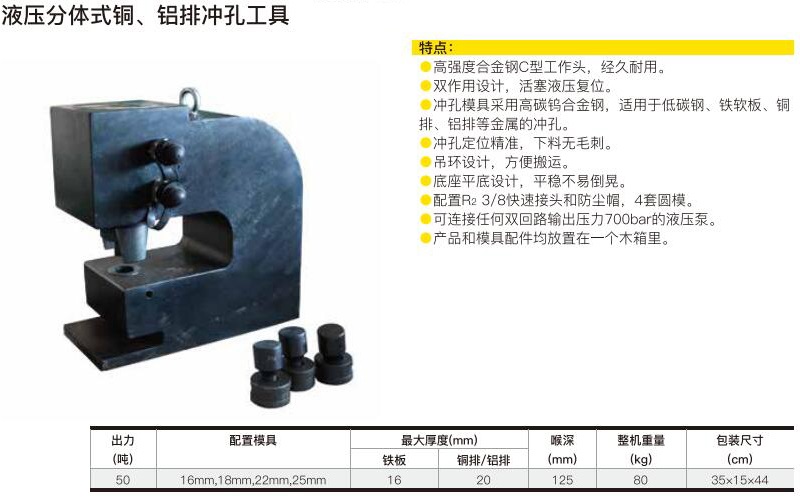 Ansell(安司耳) KT9-555-344 液压分体式铜、铝排冲孔工具具有以下特点: