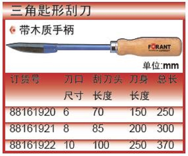 刀口尺寸为6mm,刮刀头长度为70mm,刀身长度为150mm,总长达到250mm,适用于各种精细作业。