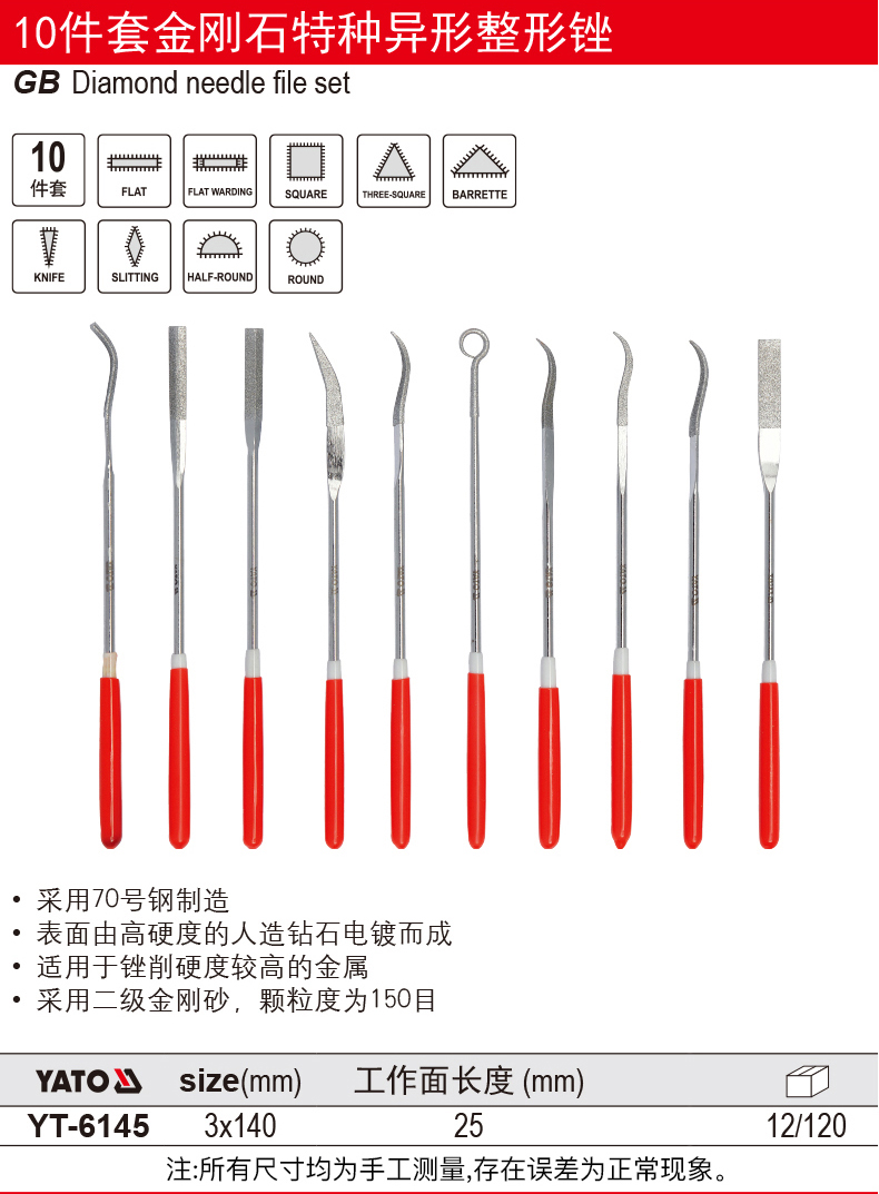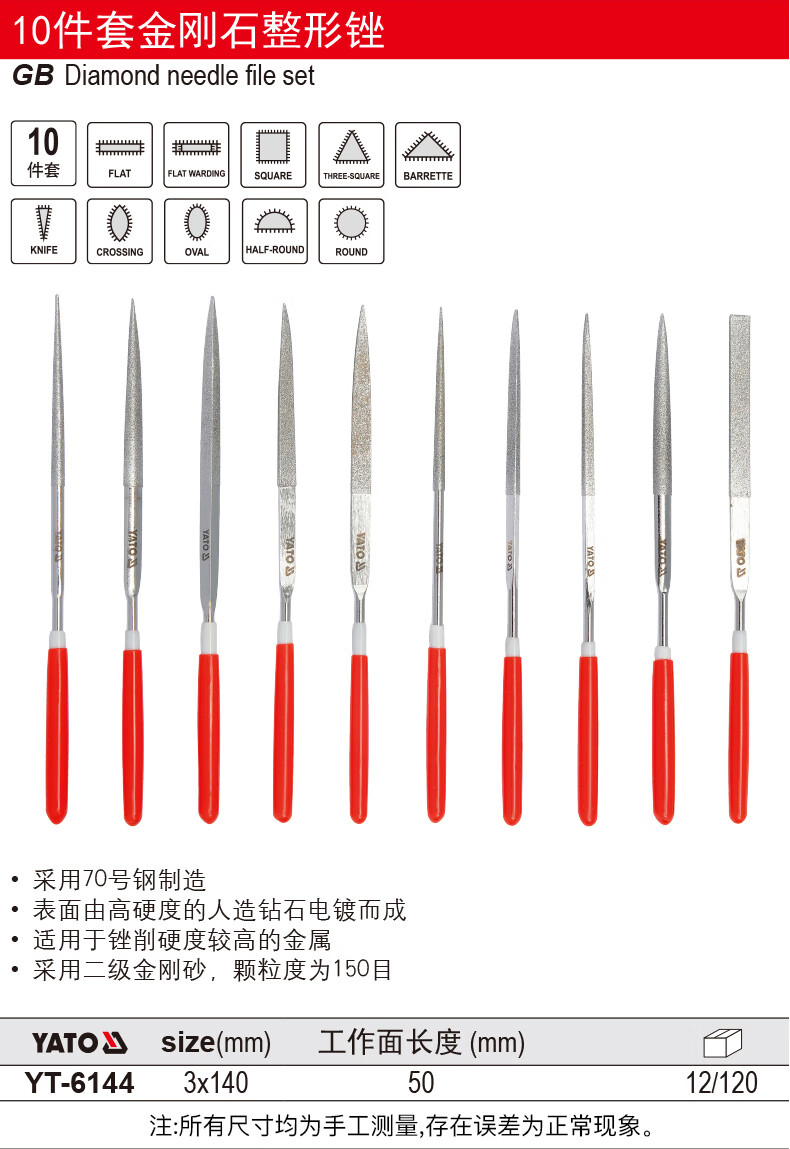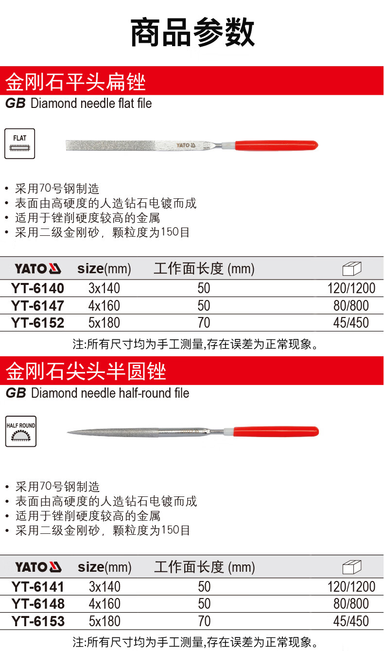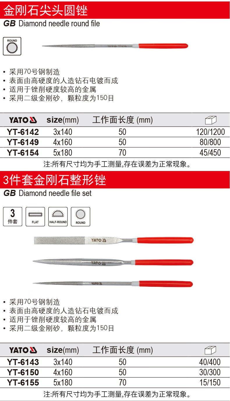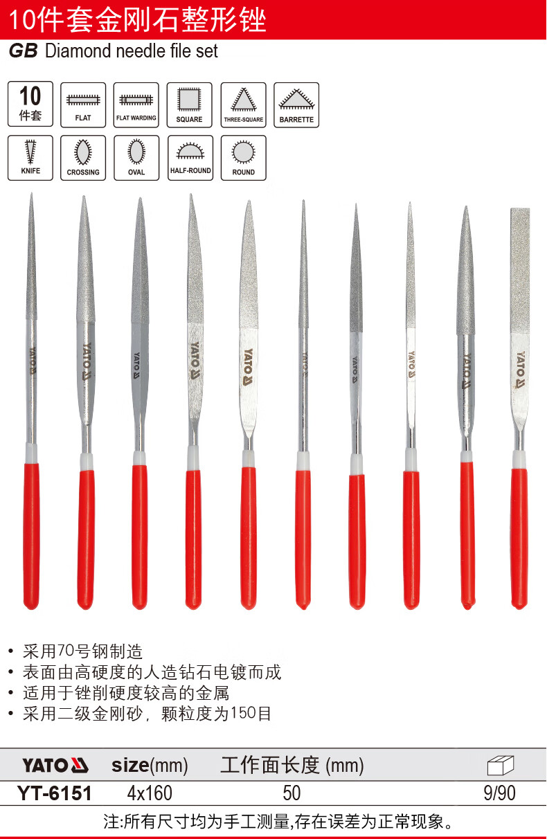 YATO(易尔拓)金刚石尖头圆锉4x160x50MM