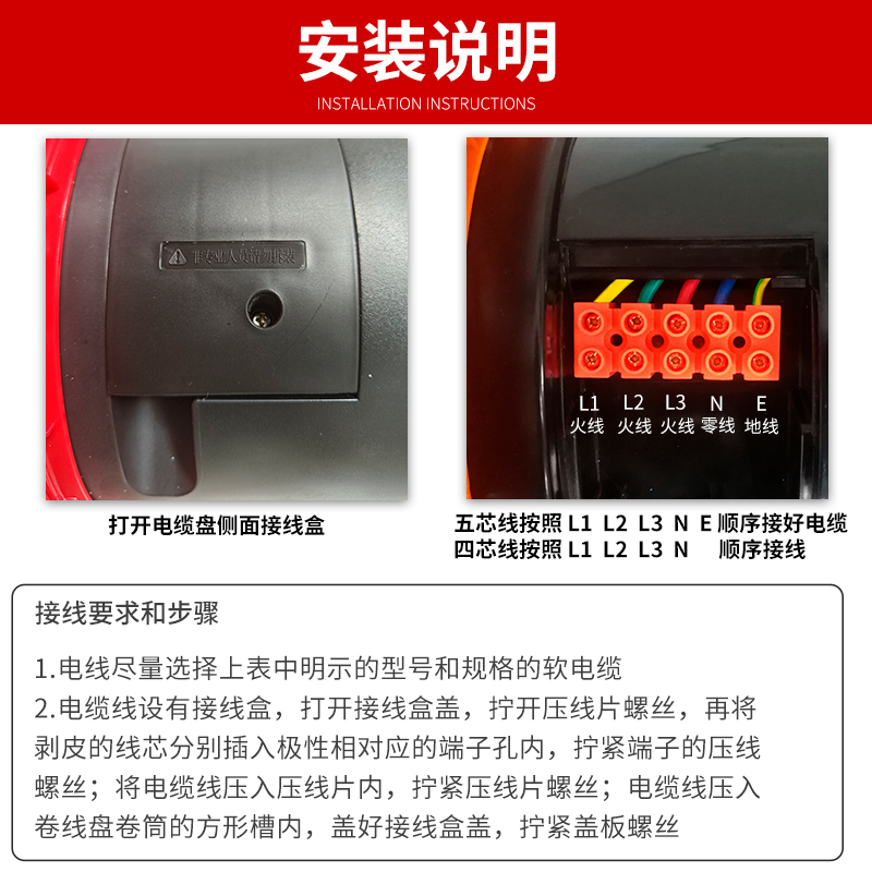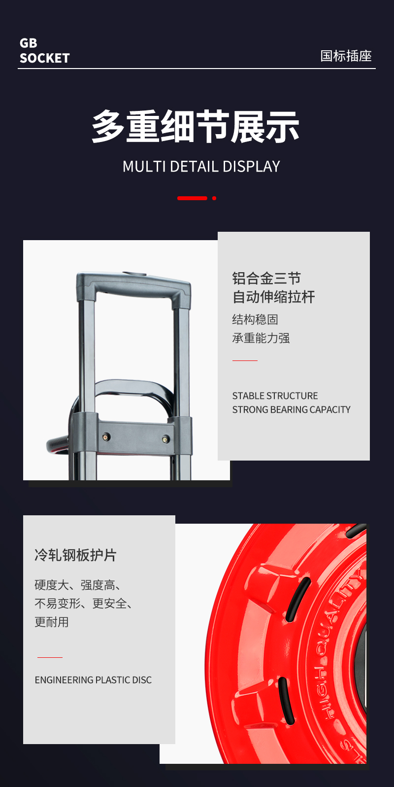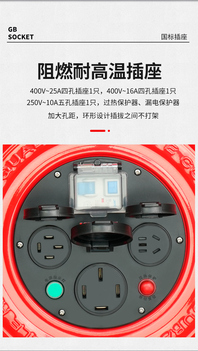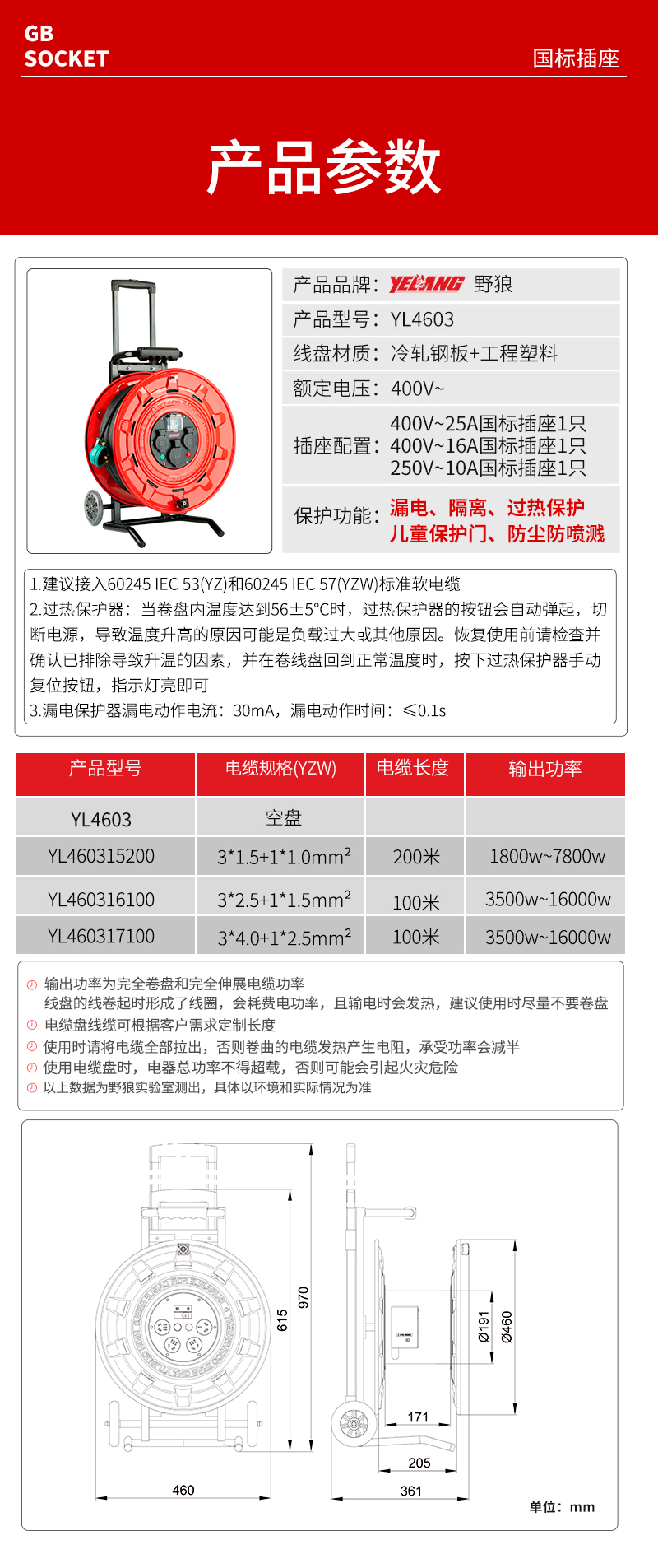 野狼YELANG 380V~400V25A绕线盘拉车式电缆盘电源盘卷线盘3*4+1*2.5长100m/ YL460317100三火一零
