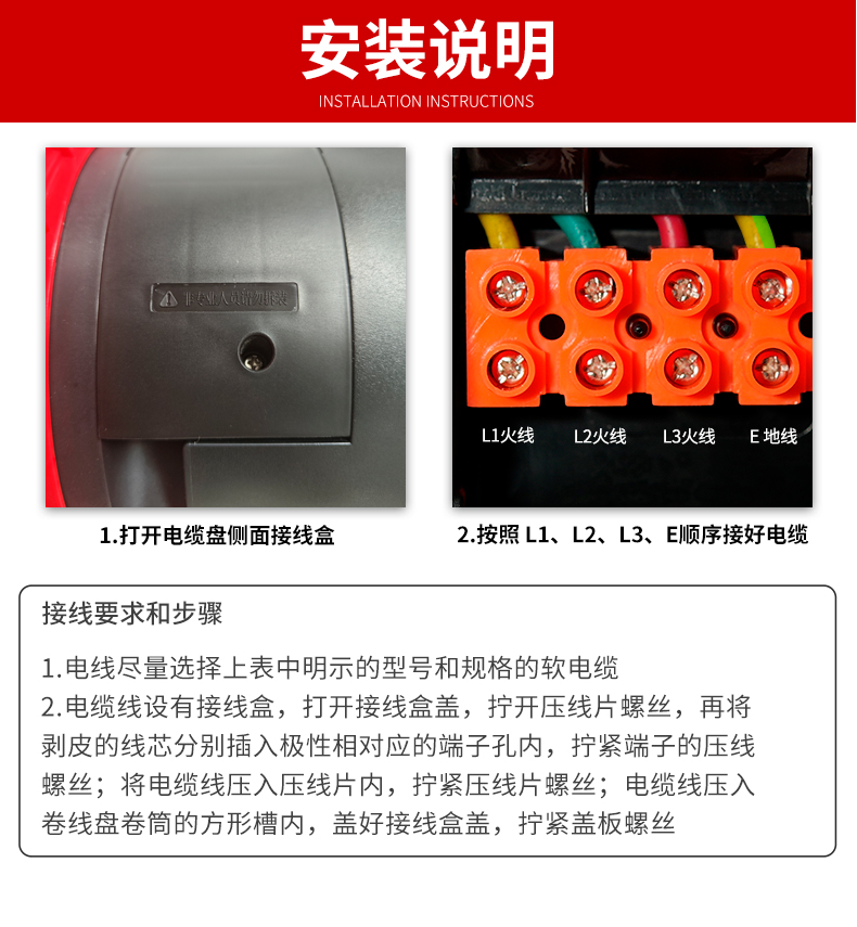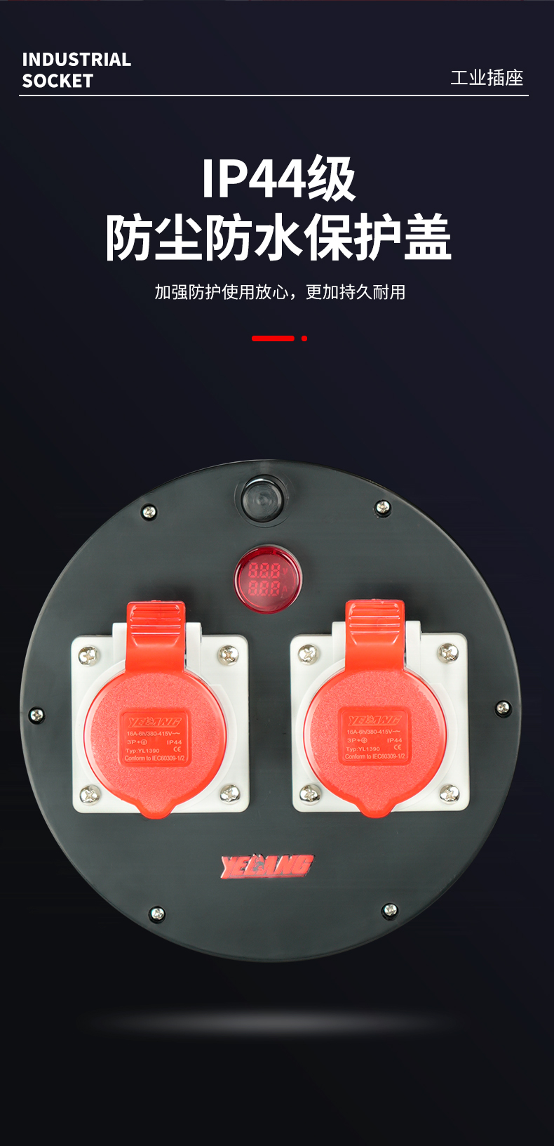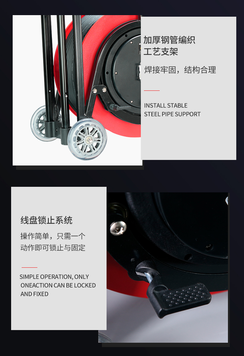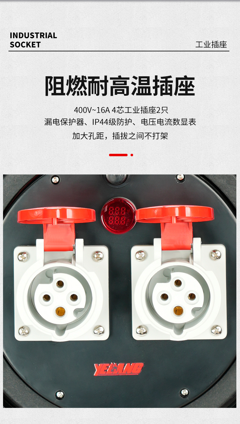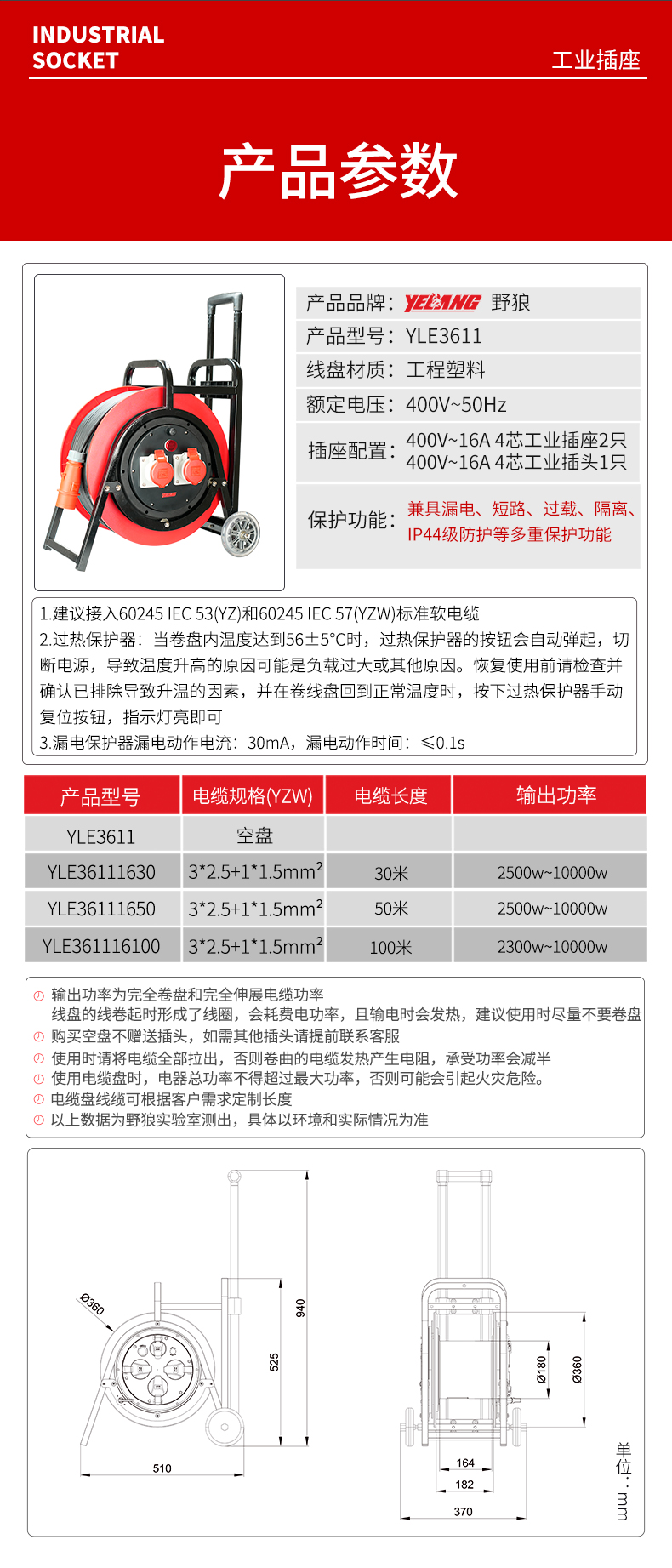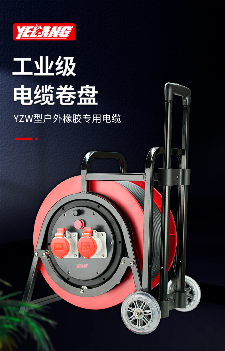 野狼YELANG 380V~400V16A工业插座IP44绕线盘拉车式电缆盘电源盘卷线盘3*2.5+1*1.5长100m/ YLE361116100