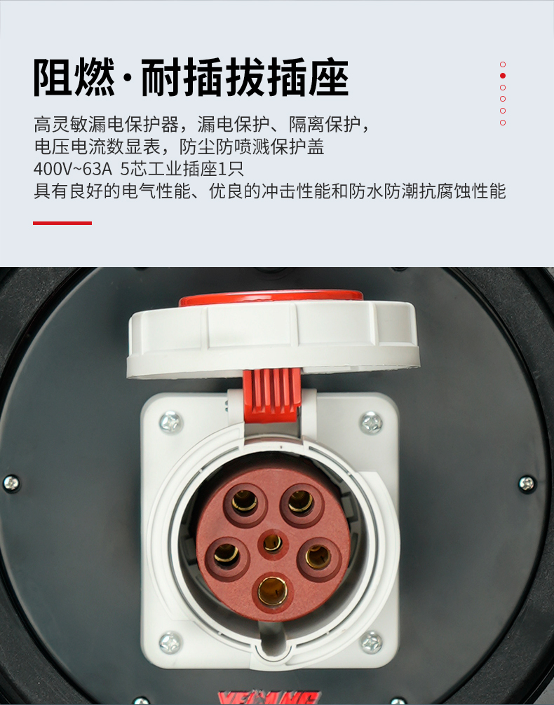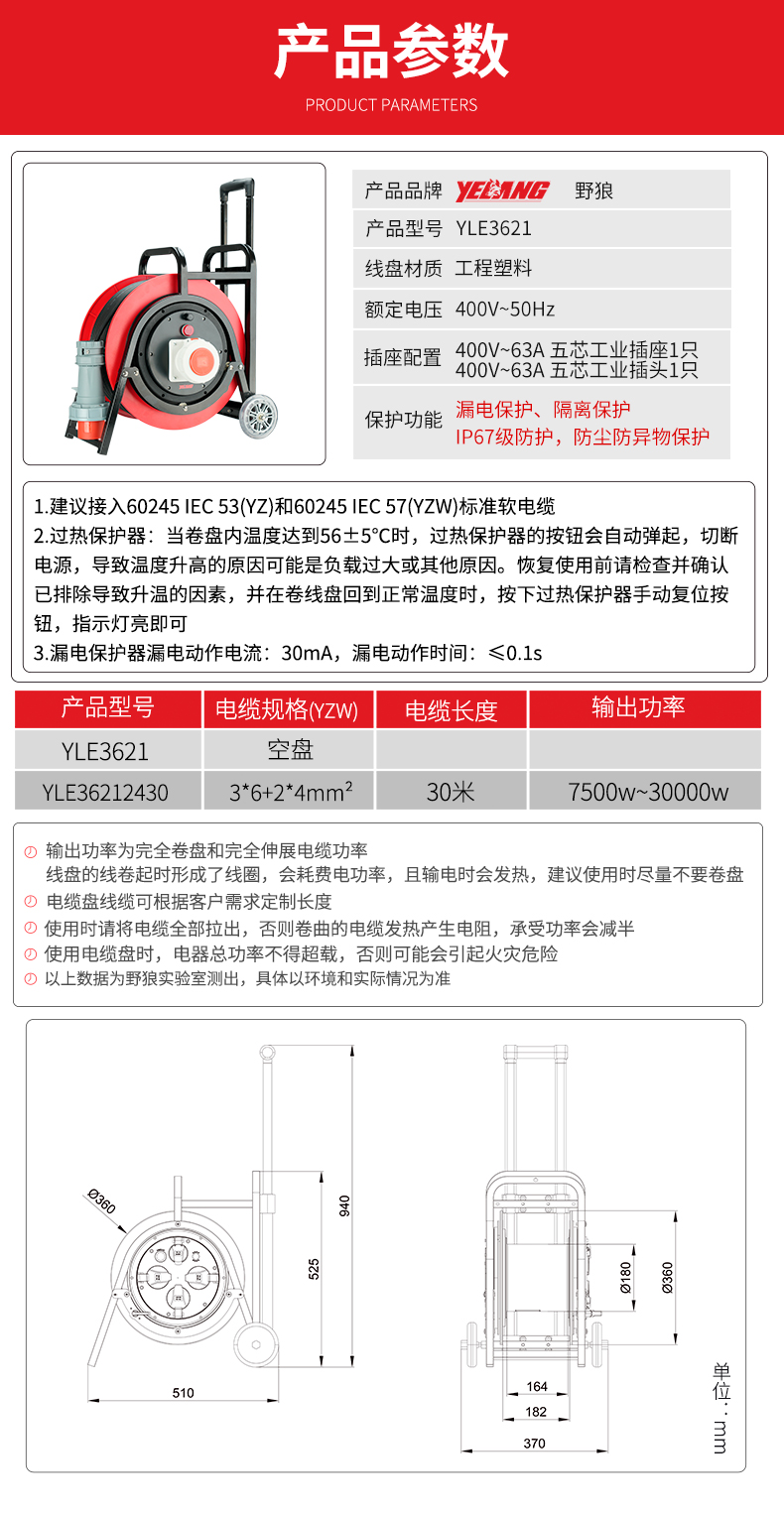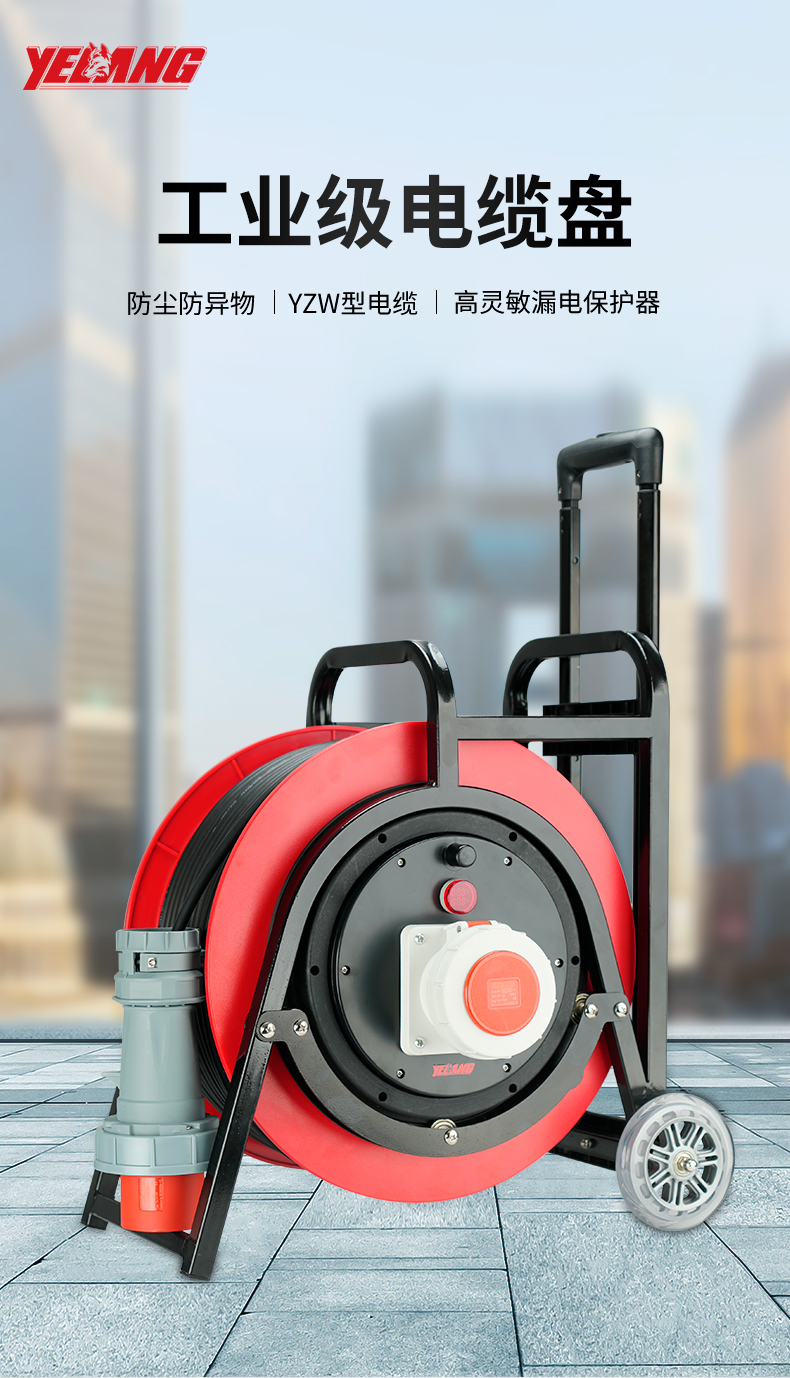 野狼YELANG 380V~400V63A工业插座IP67绕线盘拉车式电缆盘电源盘卷线盘3*6+2*4长30m/ YLE36212430