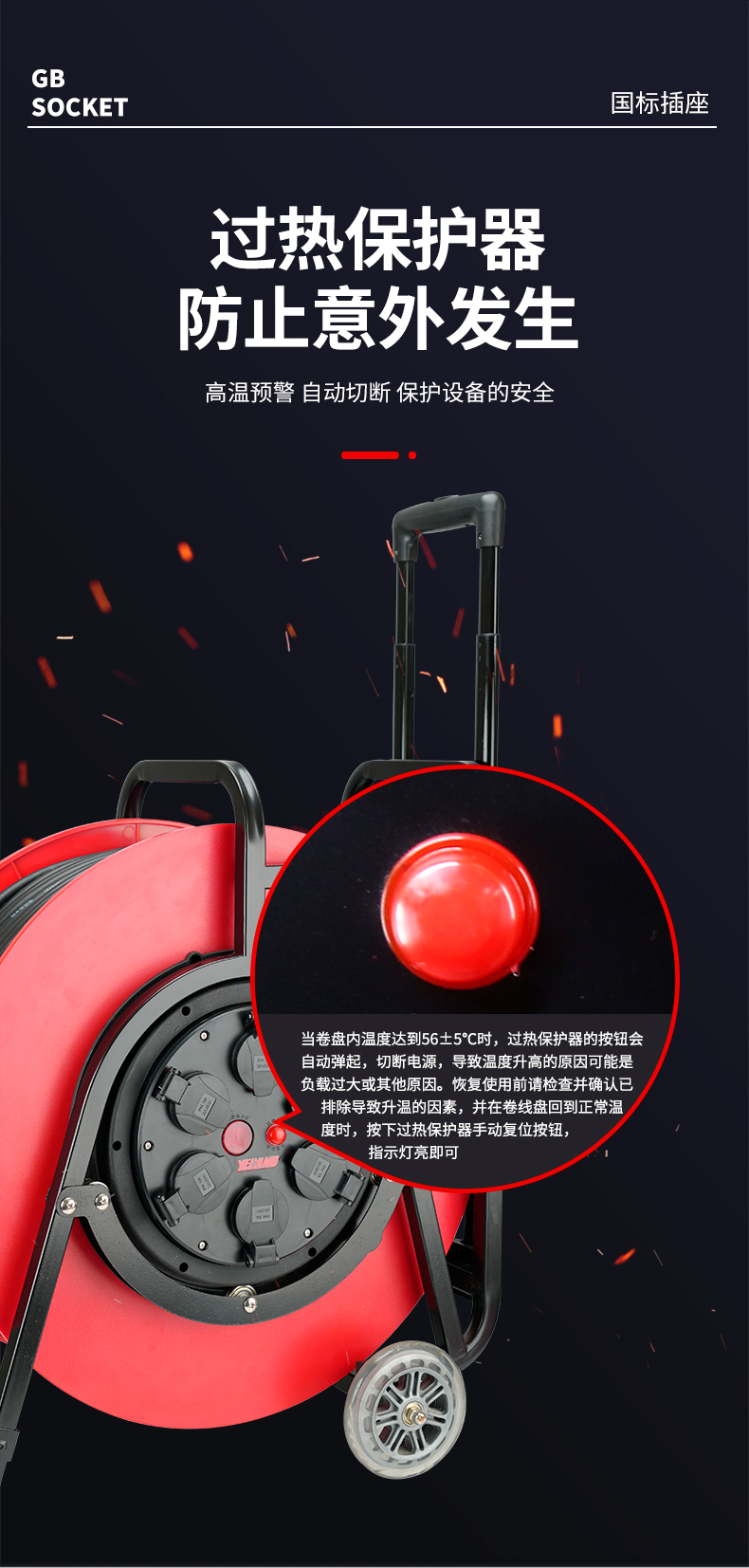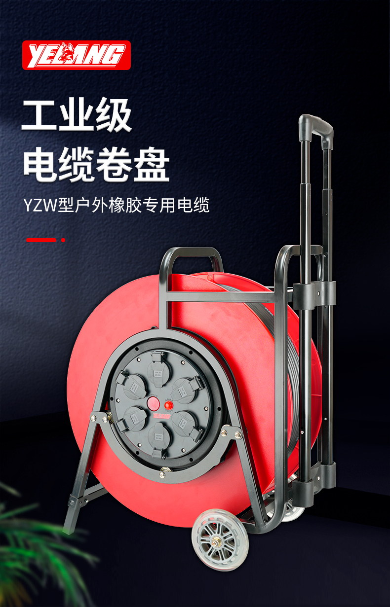 野狼YELANG 220V~250V16A防尘盖绕线盘拉车式电缆盘电源盘卷线盘3*2.5*200m/ YLG520110200