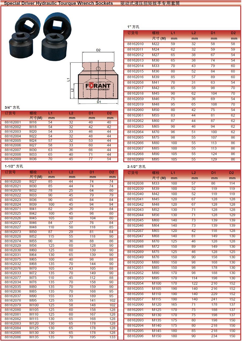 FORANT/泛特 88162035 1-1/2"气动套筒 螺栓尺寸:M80