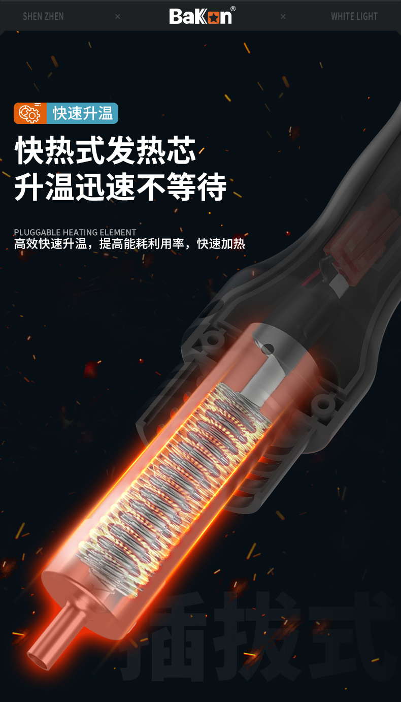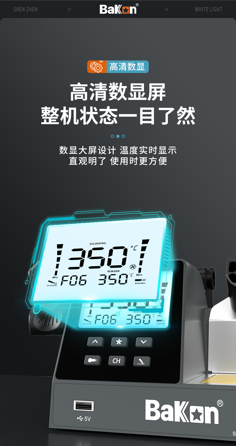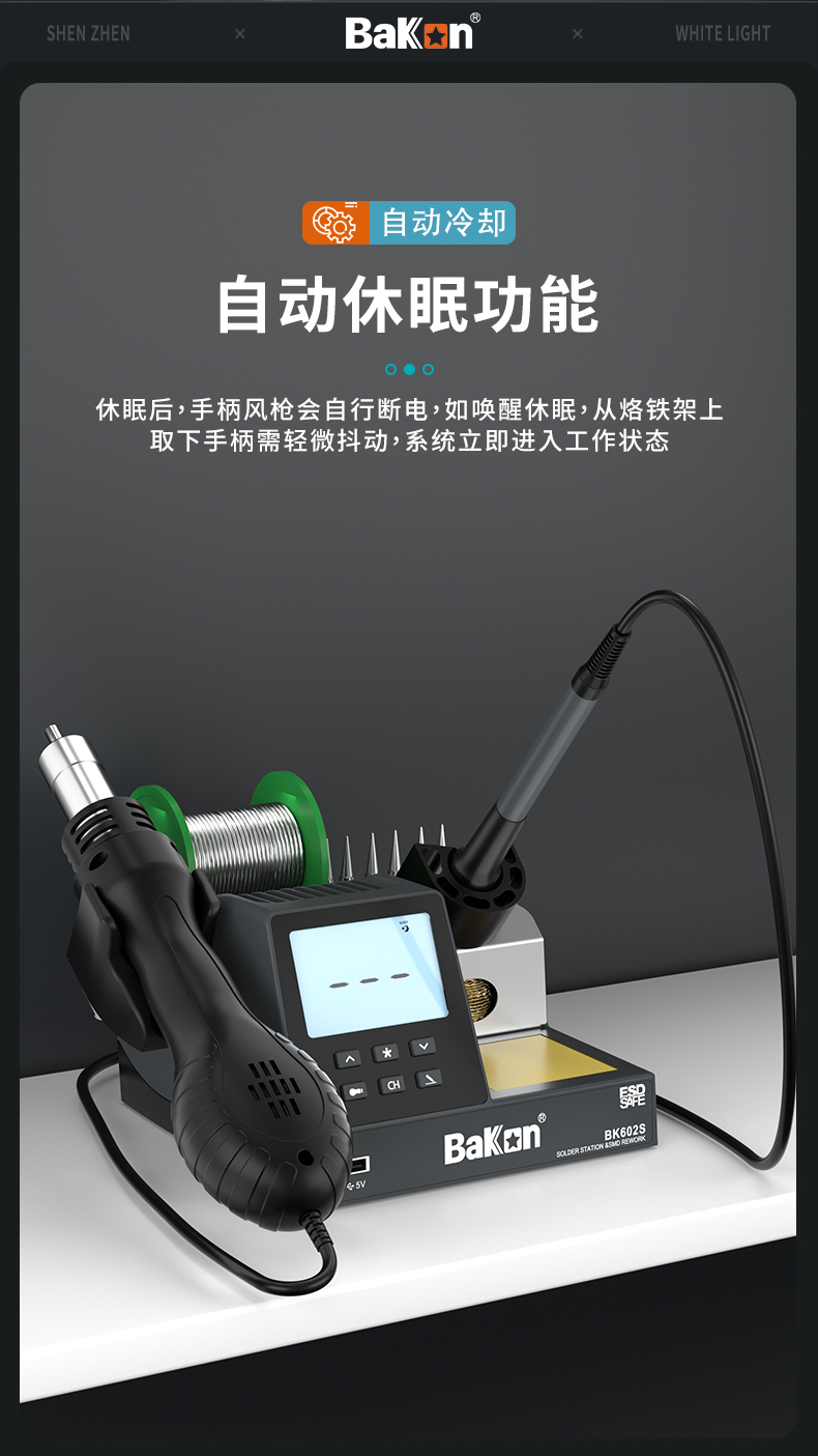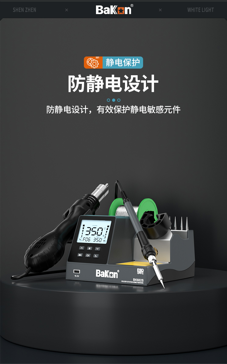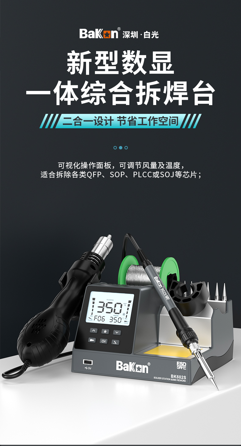 Bakon(深圳白光),可调温电洛铁90W焊锡机数显恒温电烙铁 BK602S(二合一焊台)(新老款交替发货)