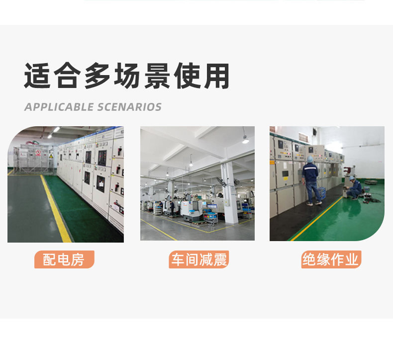 1 配电房:在配电室地面铺设,起到绝缘效果,保护工作人员免受电击风险。