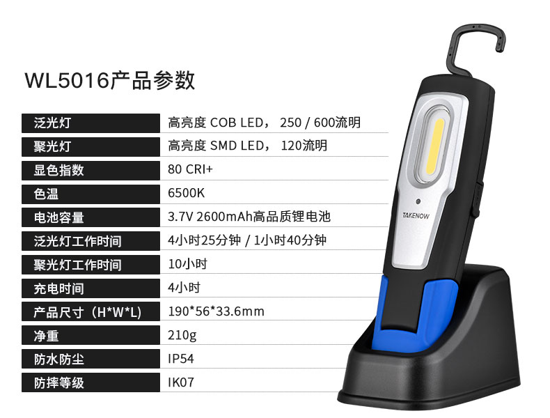 铁朗/TAKENOW WL5016多功能工作灯汽修维修灯专业机修强磁充电手持照明灯防摔