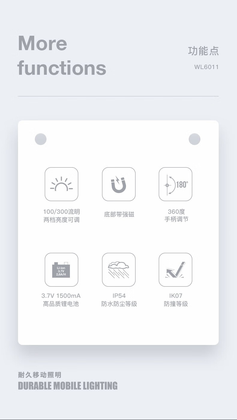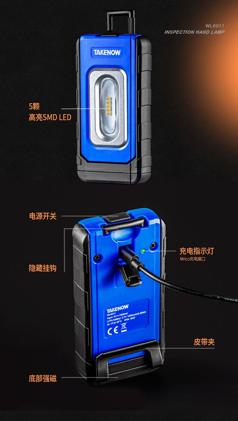 铁朗/TAKENOW 工作灯 汽修维修灯 便携式 多功能 机床检修灯 强磁 充电 防摔 WL6011