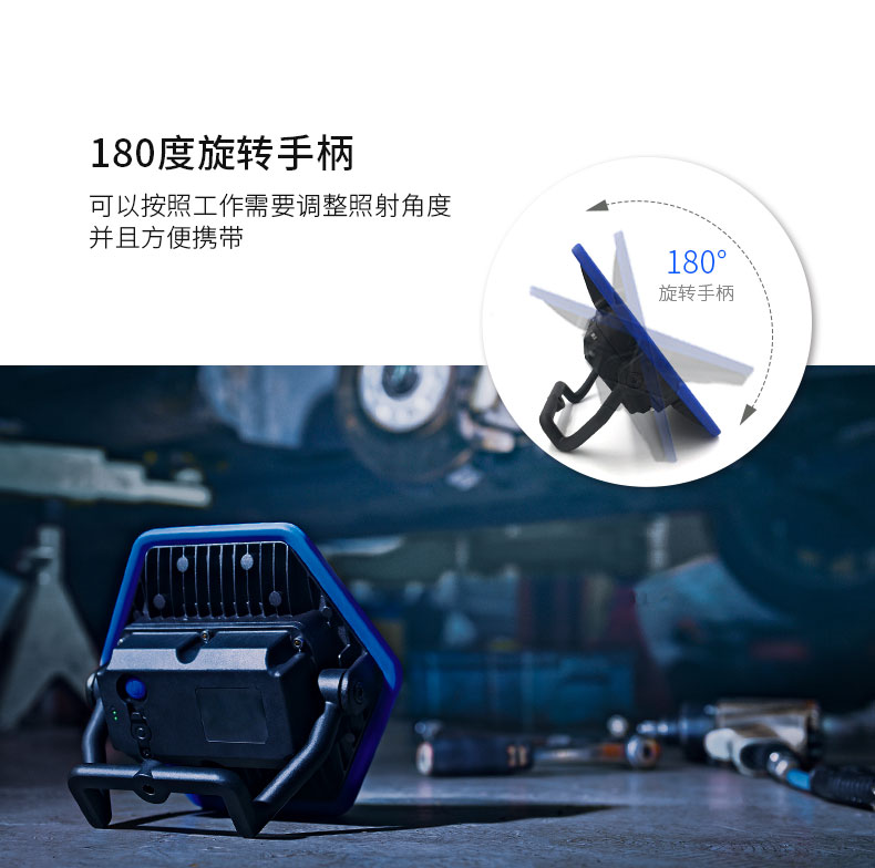 2 180度旋转手柄设计:手柄可自由旋转180度,方便用户根据实际需求调整照明角度,提高工作灵活性。