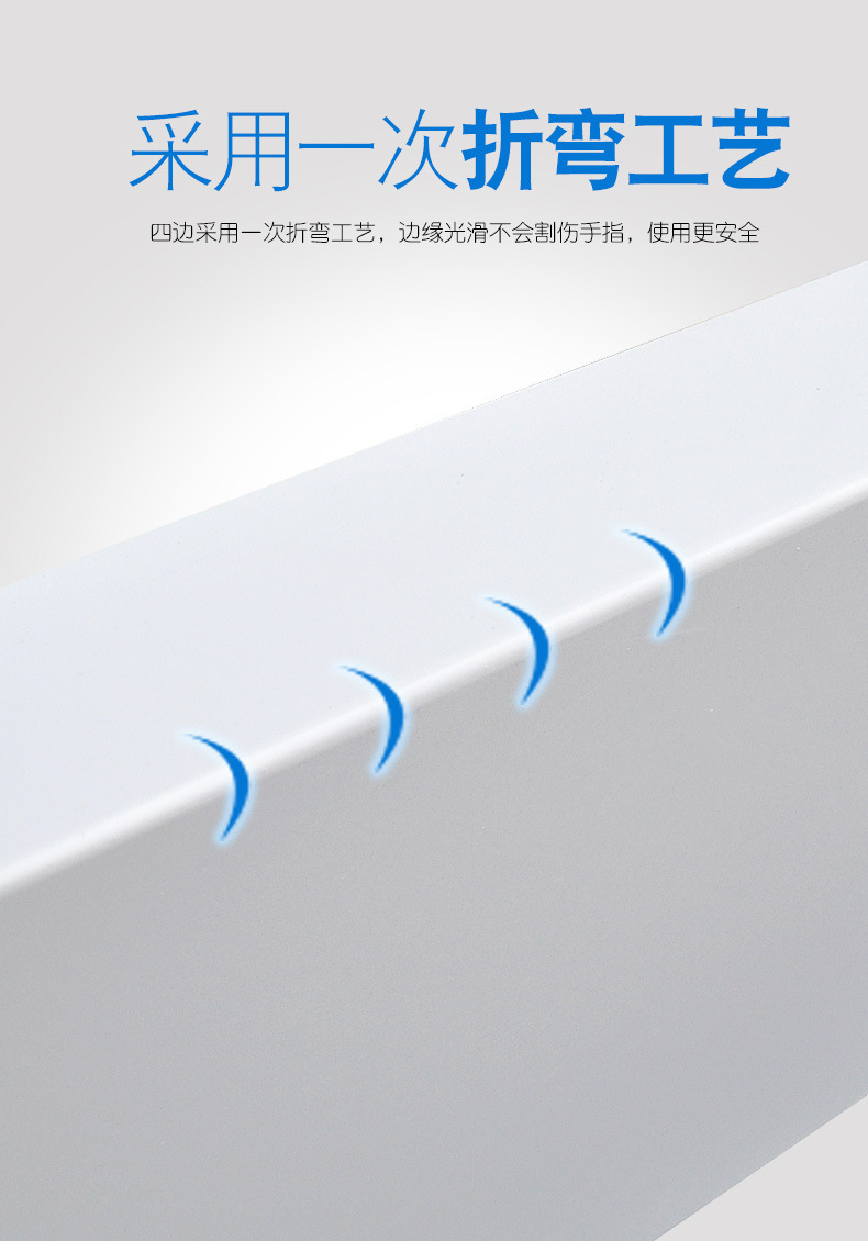 2 工艺精湛:四边采用一次折弯工艺,边缘光滑,避免割伤手指,确保使用安全。