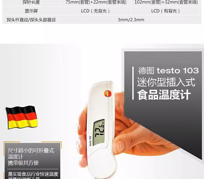 | 尺寸 | 163 x 47 x 20 mm (probe folded away) |