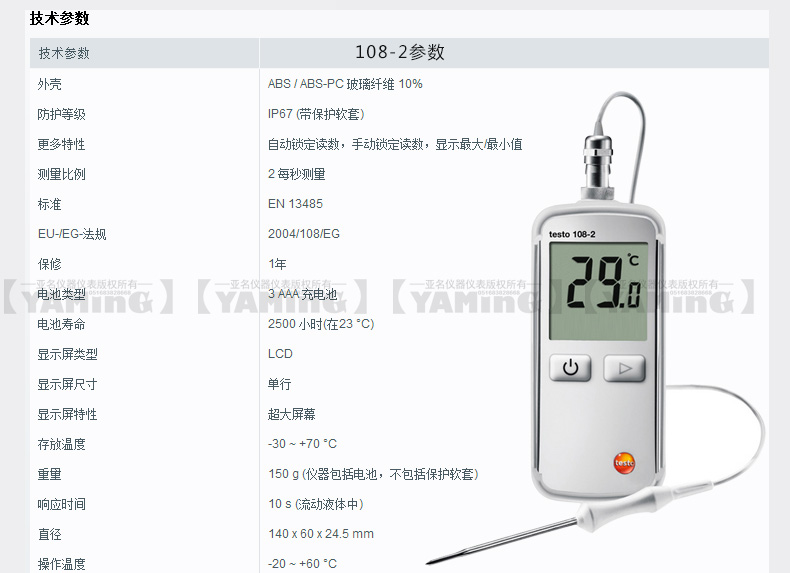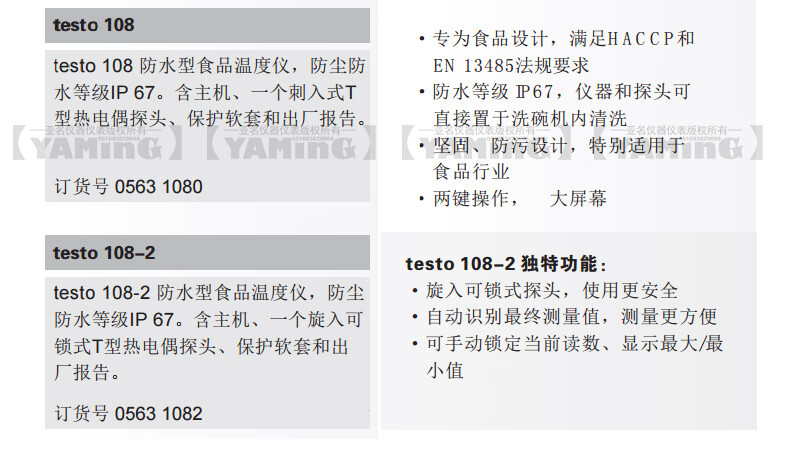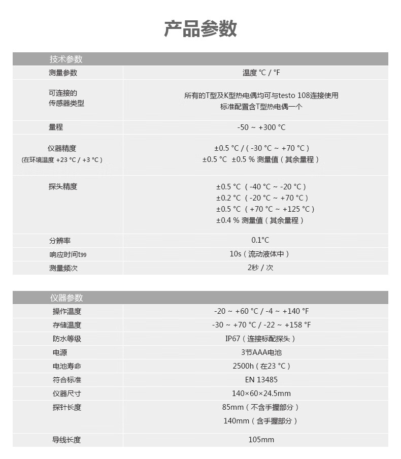 | 防护等级 | IP67 (with connected Testo probe included in delivery) |