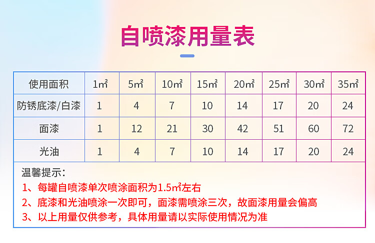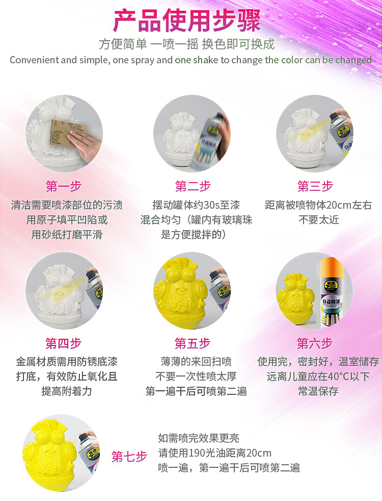安全提示:佩戴口罩和手套,避免吸入漆雾和皮肤接触,远离火源。