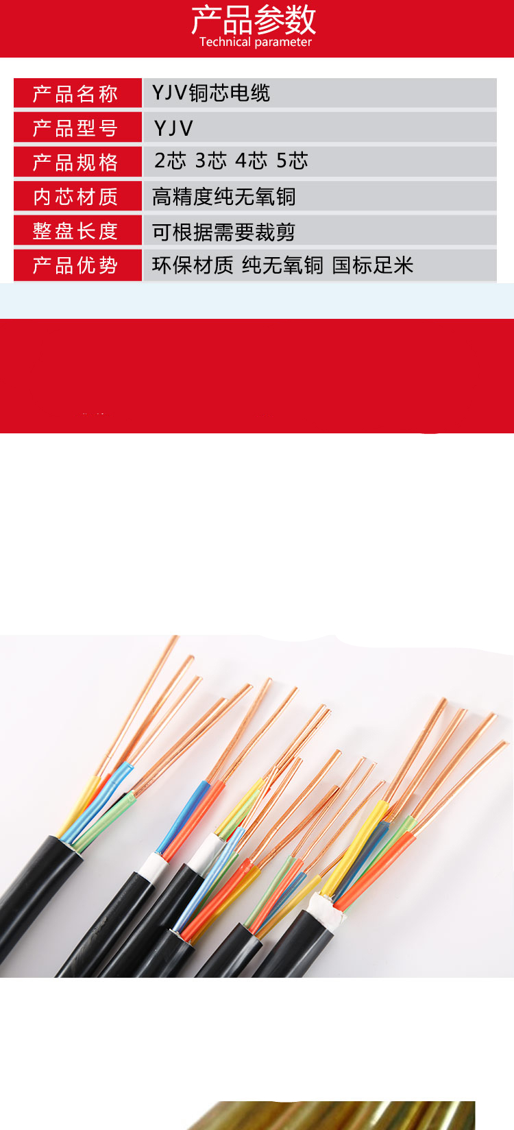 SHITENG/世腾 YJV足米足方国标纯铜线缆 YJV3*2.5