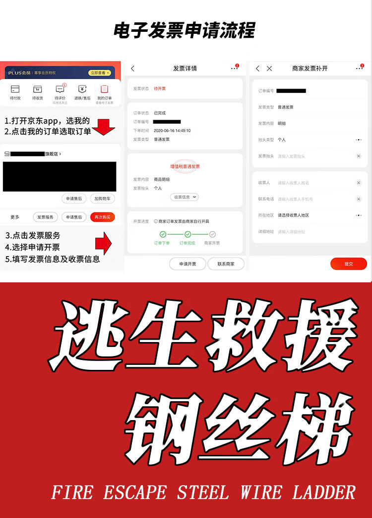 虎鲸安 火灾逃生钢丝梯钢绳梯钢丝绳软梯5米 定制消防逃生梯铝合金云梯防火