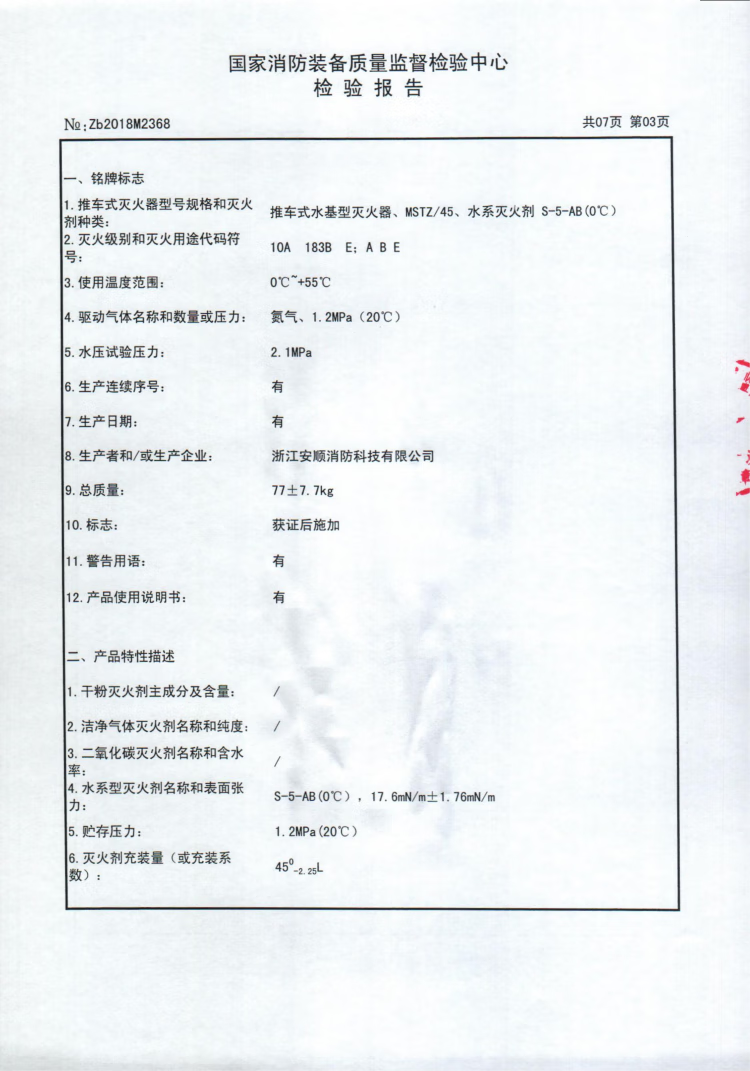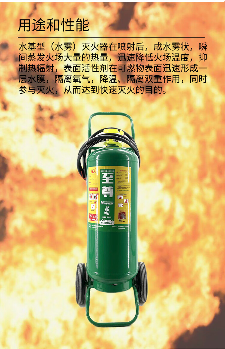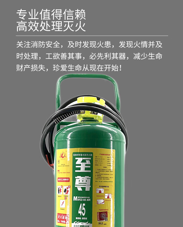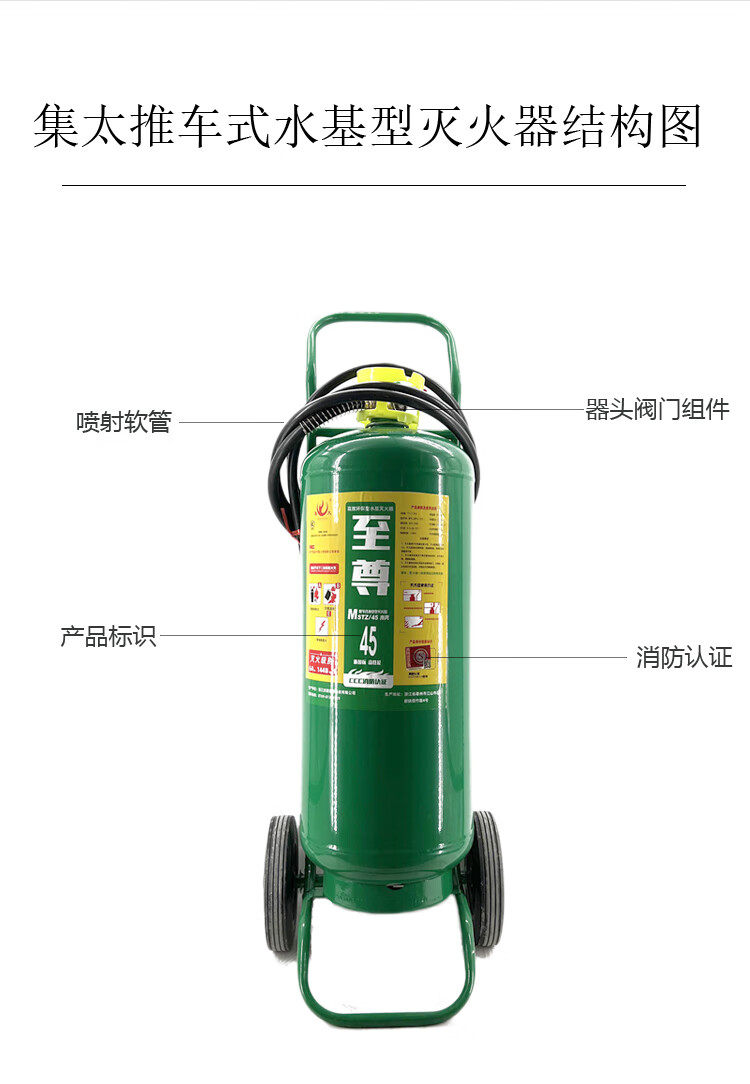 集太至尊系列MSTZ/45推车式水基型灭火器,具备以下显著特点: