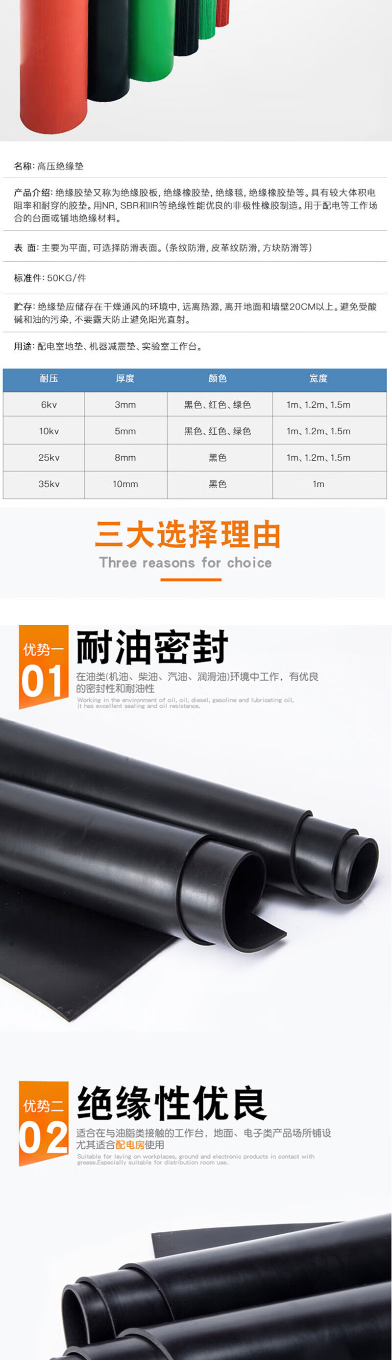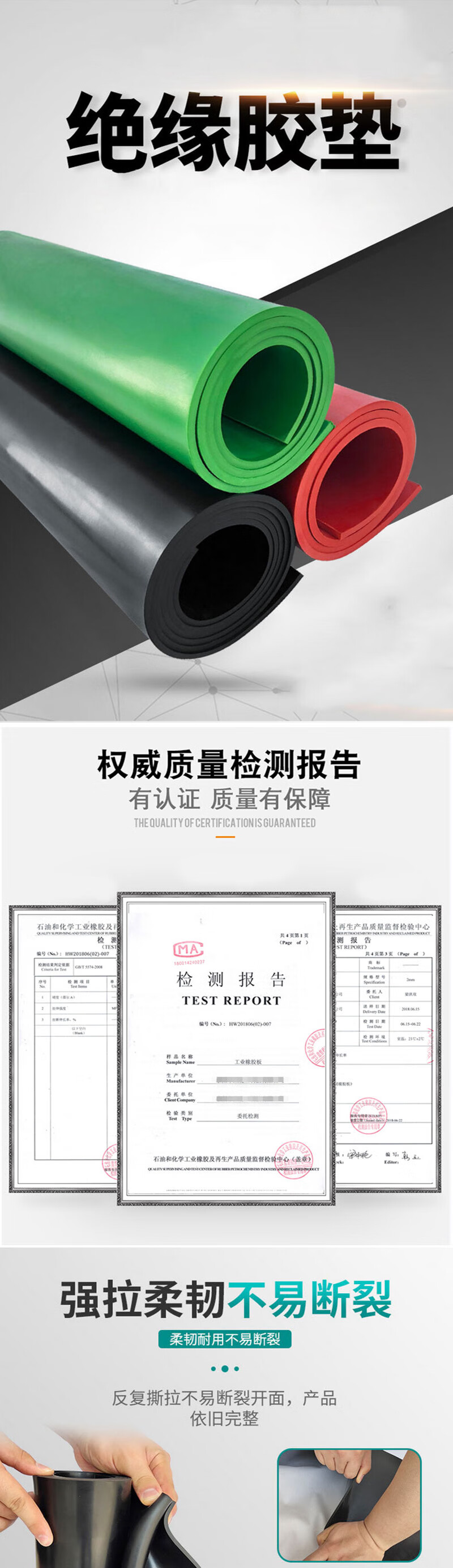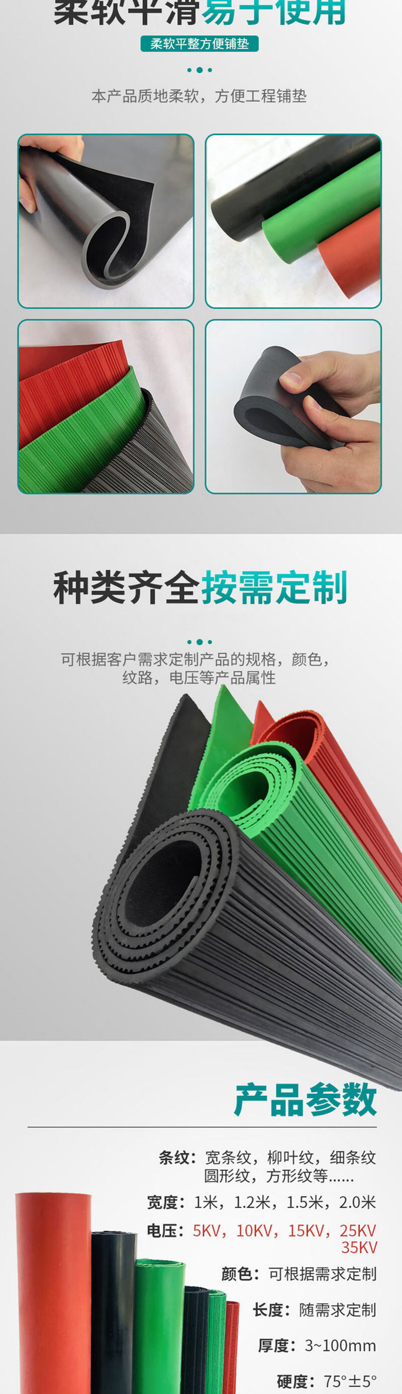 鸣固/MINGGU 10KV绝缘垫橡胶板 1.5宽6米长 3mm厚 绿色平面