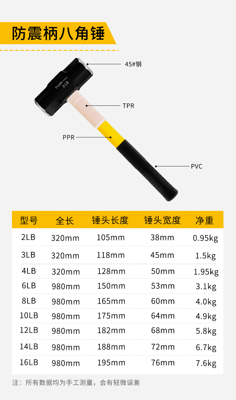 TIQRI(天琪锐)GYP-FZBBJC10P 防震柄八角锤10P