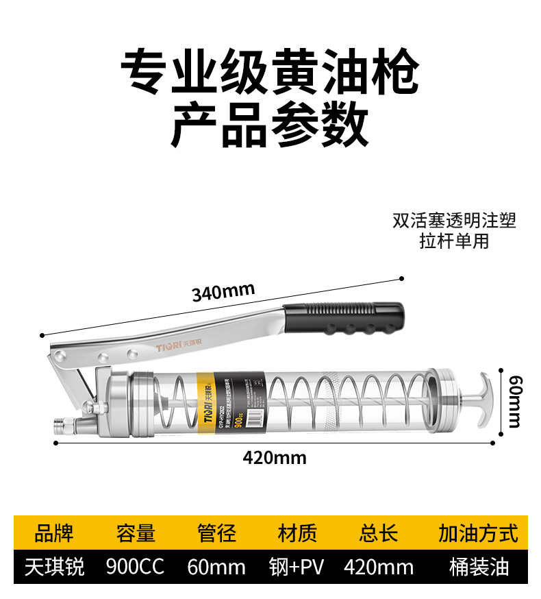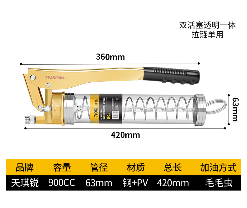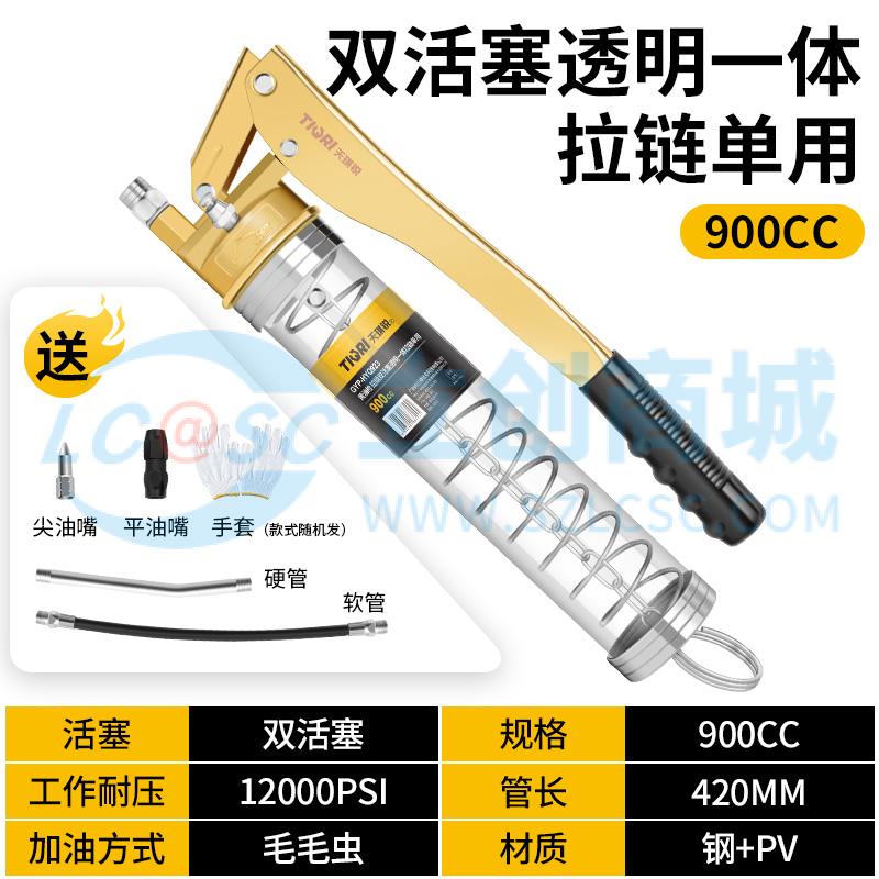 TIQRI(天琪锐)GYP-HYQ923 黄油枪 双活塞透明一体拉链单用 900CC