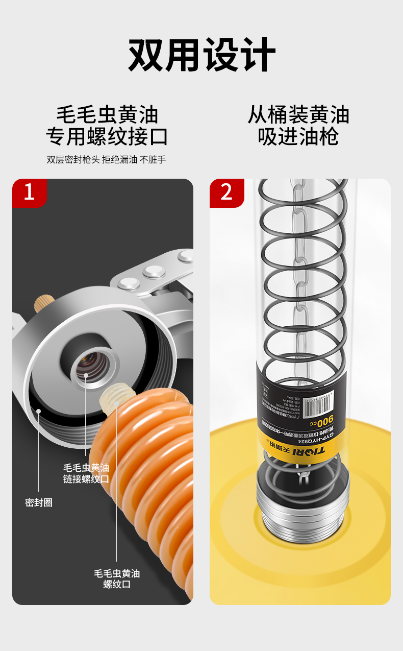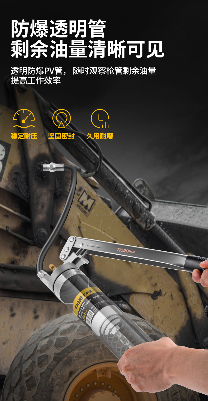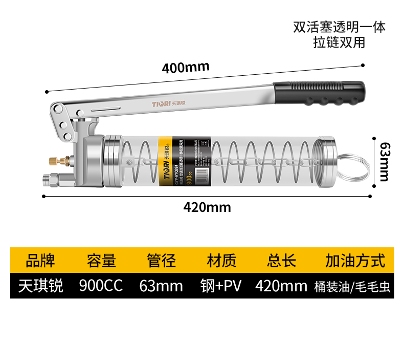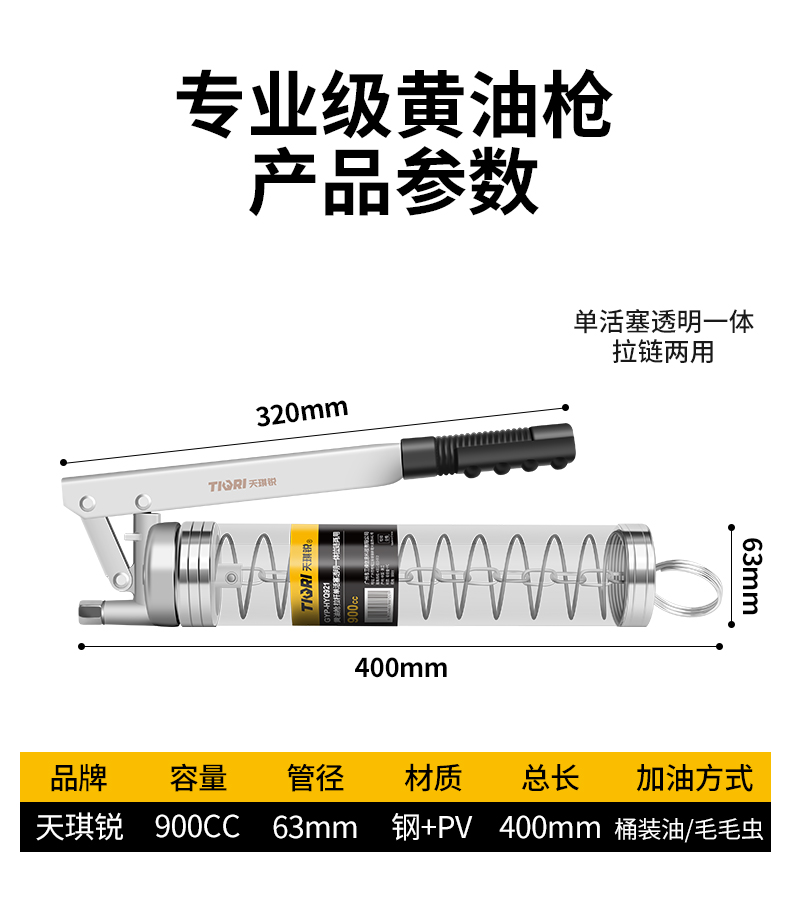 TIQRI(天琪锐) GYP-HYQ921 黄油枪 单活塞透明一体拉链两用 900CC
