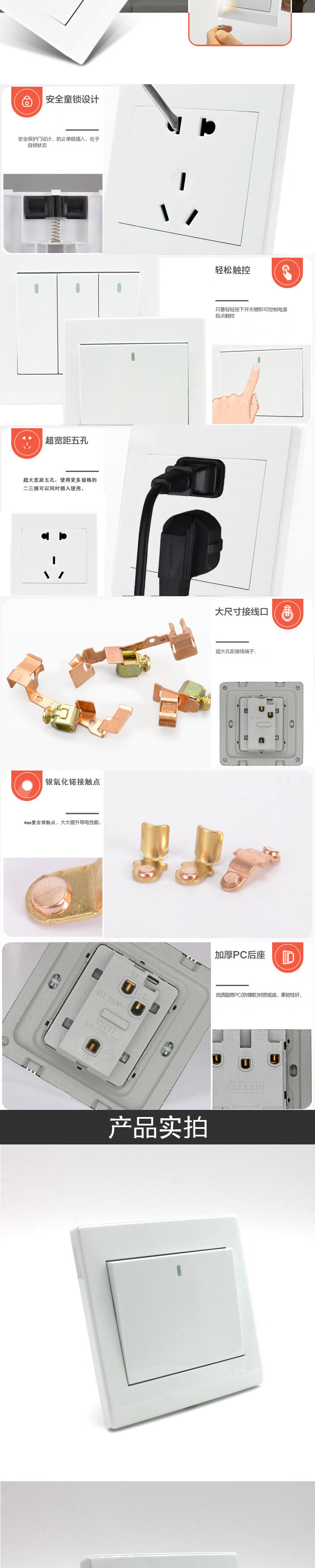 皮阿诺 KG8608 86型开关插座面板 暗装一开五孔单控 雅白色