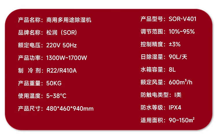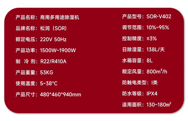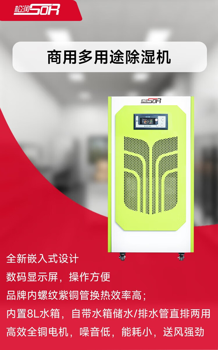 松润/SOR 大功率商用除湿机 大除湿量低噪音智能款 仓库地下室车库档案室车间用 SOR-V402[138L /天 180m²]