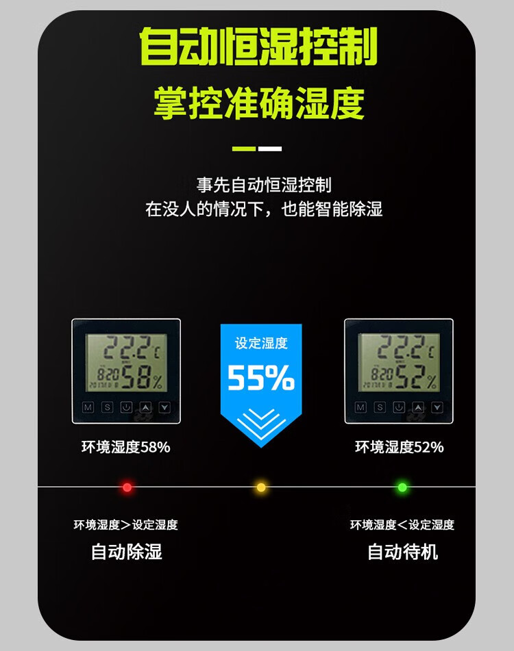 6 自动恒湿控制:根据设定值自动启动和停止除湿,实现精准湿度管理。