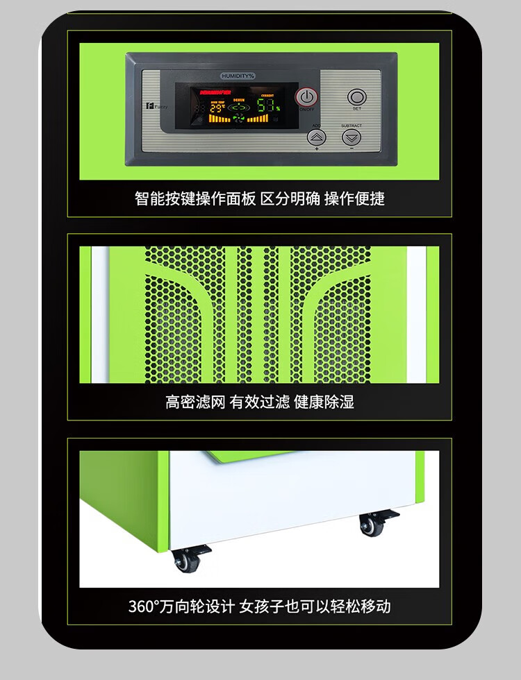 7 高密滤网:有效过滤空气中的杂质,保证健康除湿。