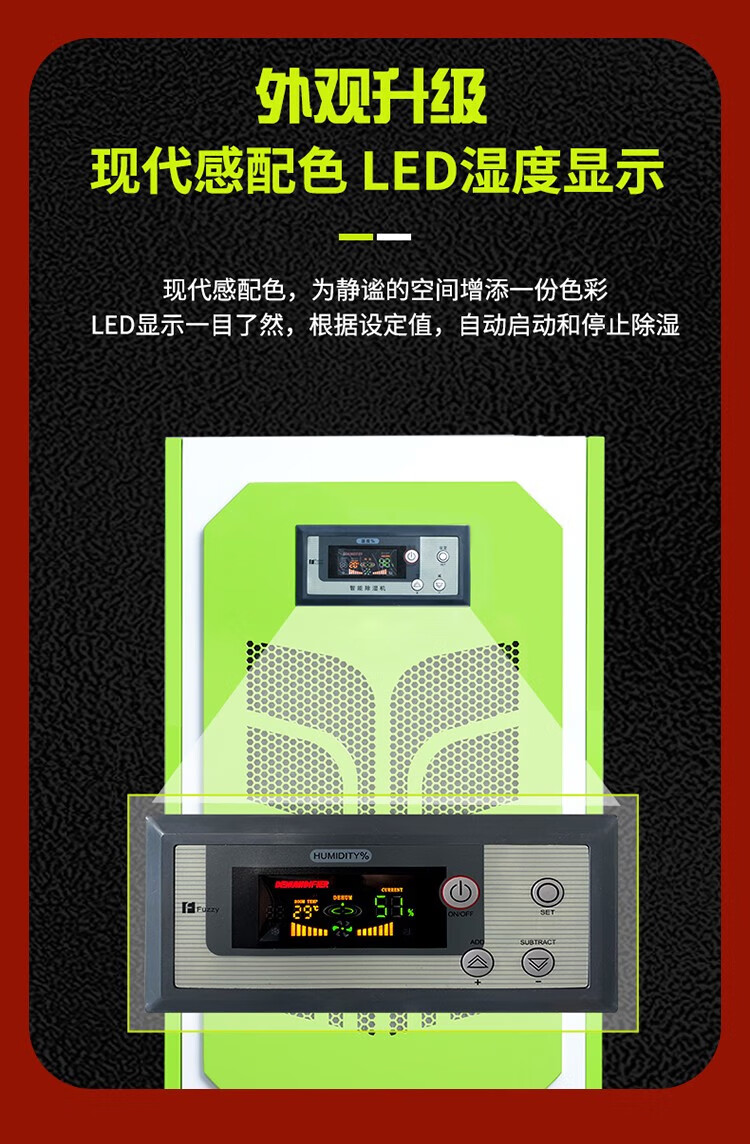 7 现代外观:绿色现代感配色,LED湿度显示,提升视觉效果和操作便捷性。