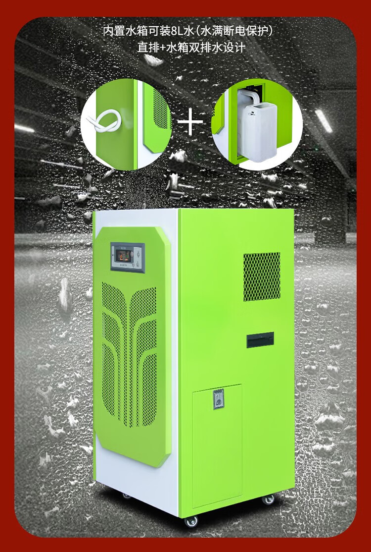 该除湿机广泛适用于多种工业和商业环境,如工厂车间、仓库、地下室、车库、档案室等需要干燥环境的场所。在工厂和车间中,它能有效防止机械设备因潮湿而生锈或损坏;在仓库中,可避免货物受潮变质;在地下室和车库中,能保持空气干燥,防止霉菌滋生。此外,它还适用于酒店、居家、别墅等民用场景,提供舒适的居住环境。在茶叶和干果业中,它能确保产品在储存过程中的干燥度,延长保质期。其强大的除湿能力和智能化设计,使其在各种工作条件下均能表现出色,解决特定工业或电子系统中的湿度问题。