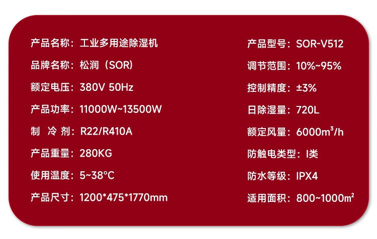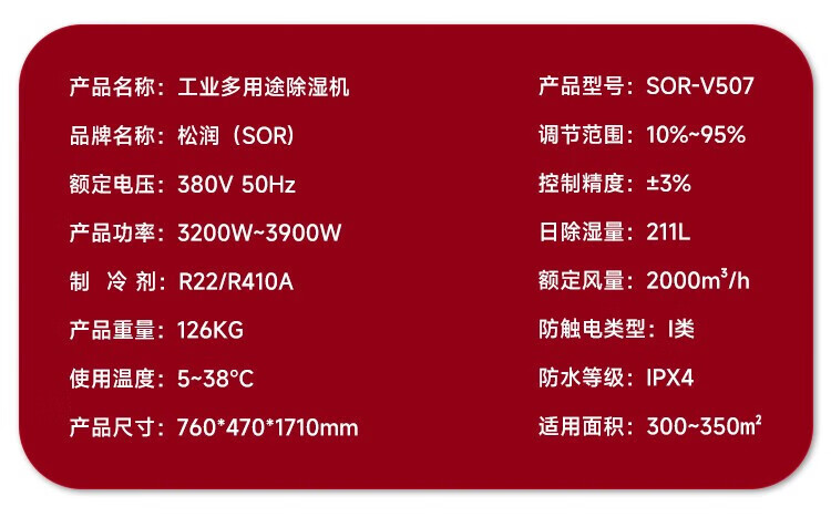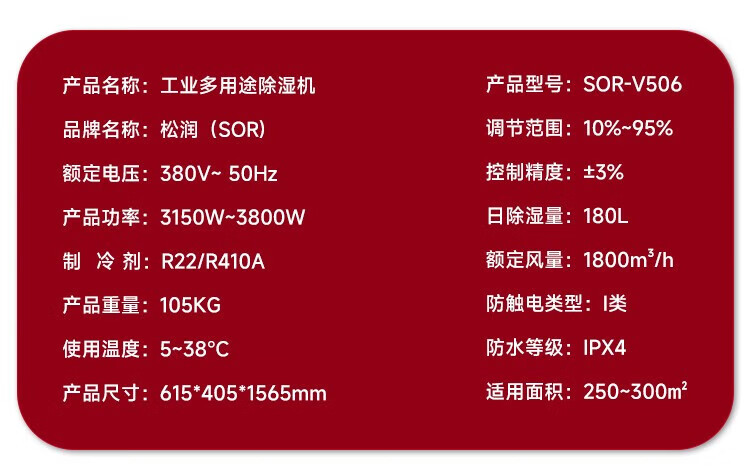 松润/SOR 工业除湿机 防爆大功率商用大除湿量低噪音智能款 大型公共场所仓库地下室车库档案室车间用 SOR-V509[288L 500m²]