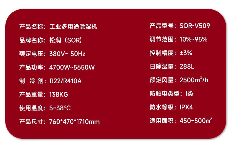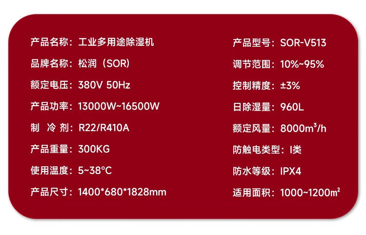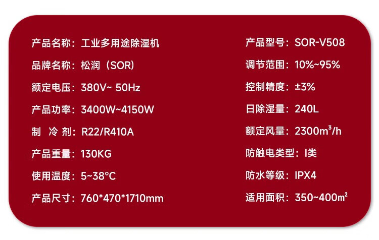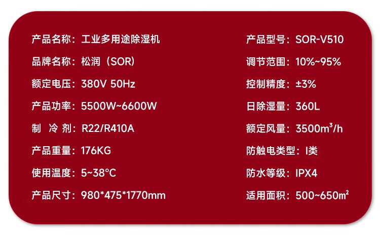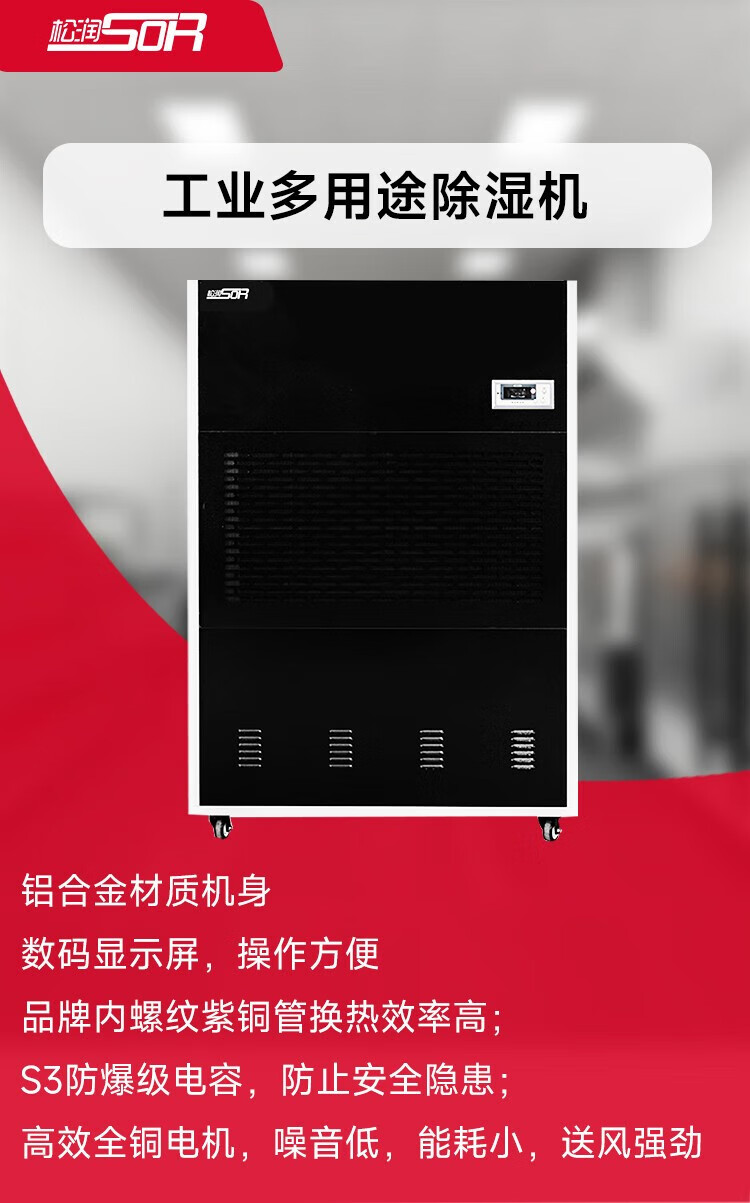 松润/SOR 工业除湿机 防爆大功率商用大除湿量低噪音智能款 大型公共场所仓库地下室车库档案室车间用 SOR-V512[720L 1000m²]