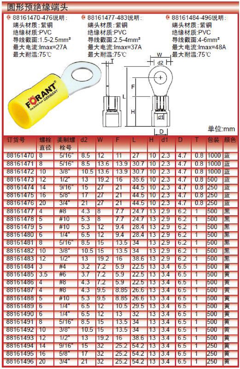 FORANT/泛特 88161470 圆形预绝缘端子 螺栓直径:8mm