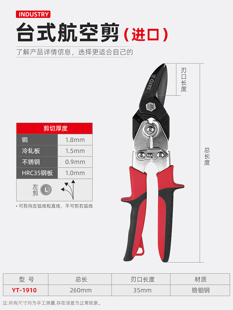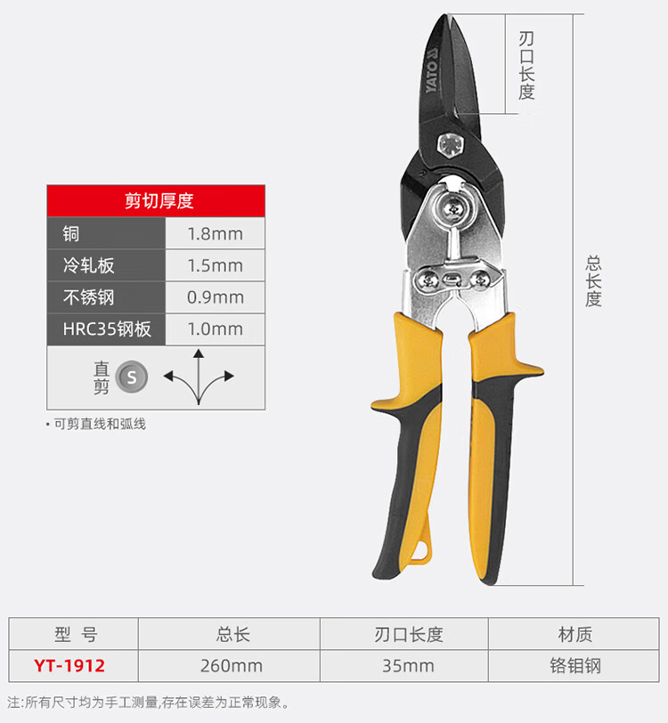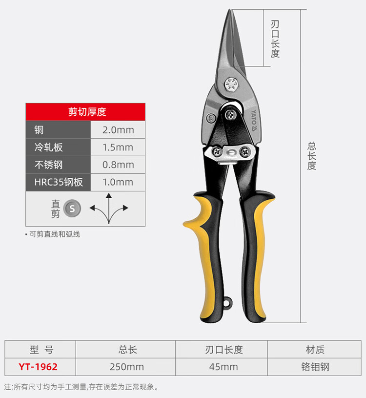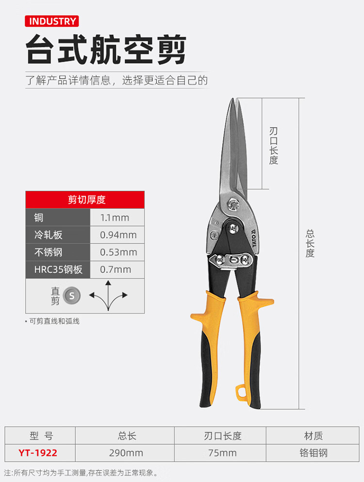 易尔拓 YATO 直切航空剪 250mm 个 YT-1962