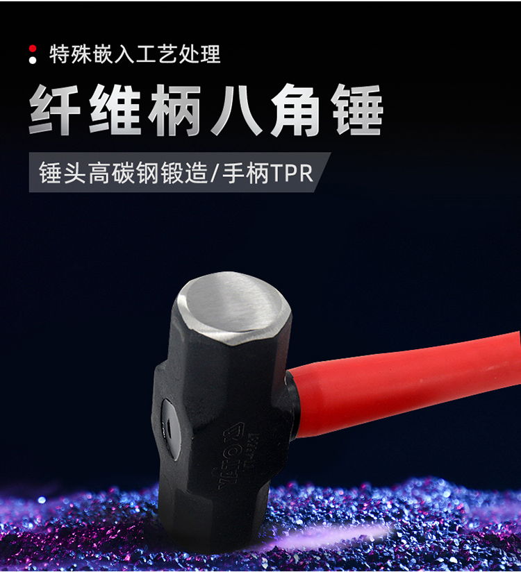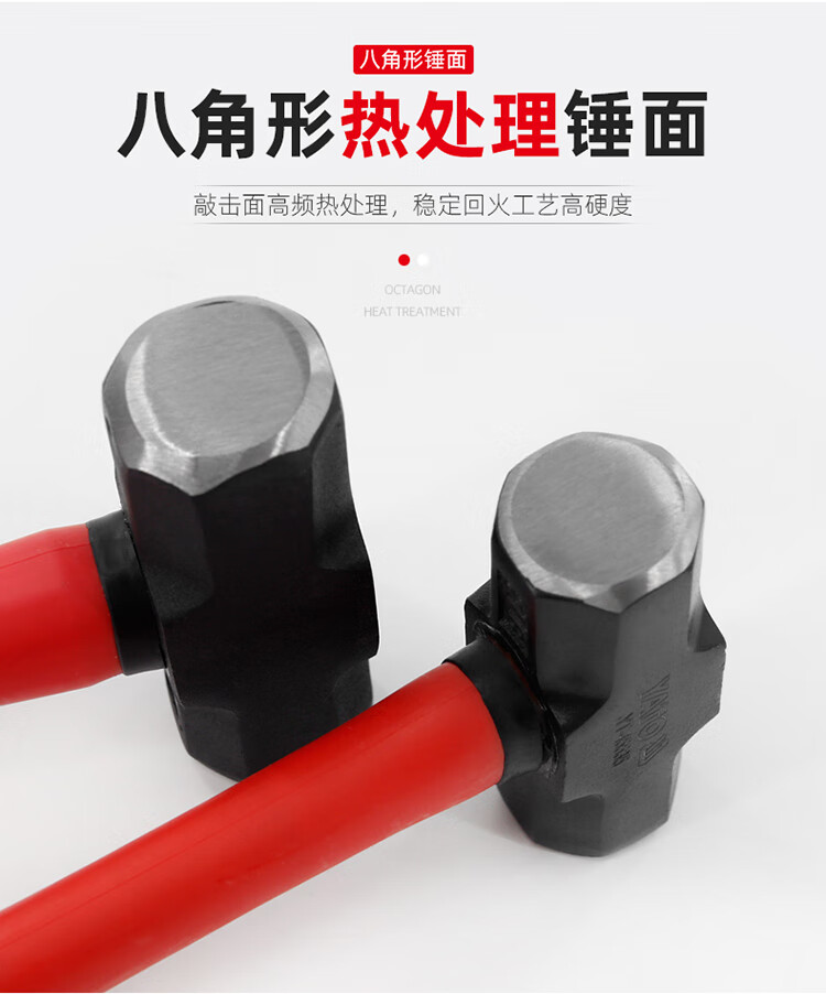 2 八角形热处理锤面:敲击面经过高频热处理,稳定回火工艺保证了高硬度和长久的使用寿命。