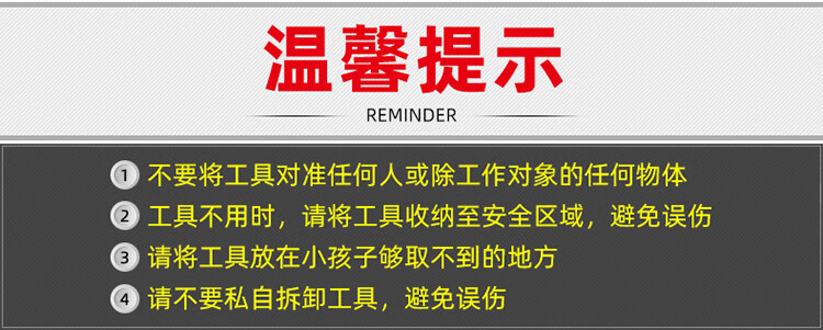 3 工具不用时,请将工具收纳至安全区域,避免误伤。