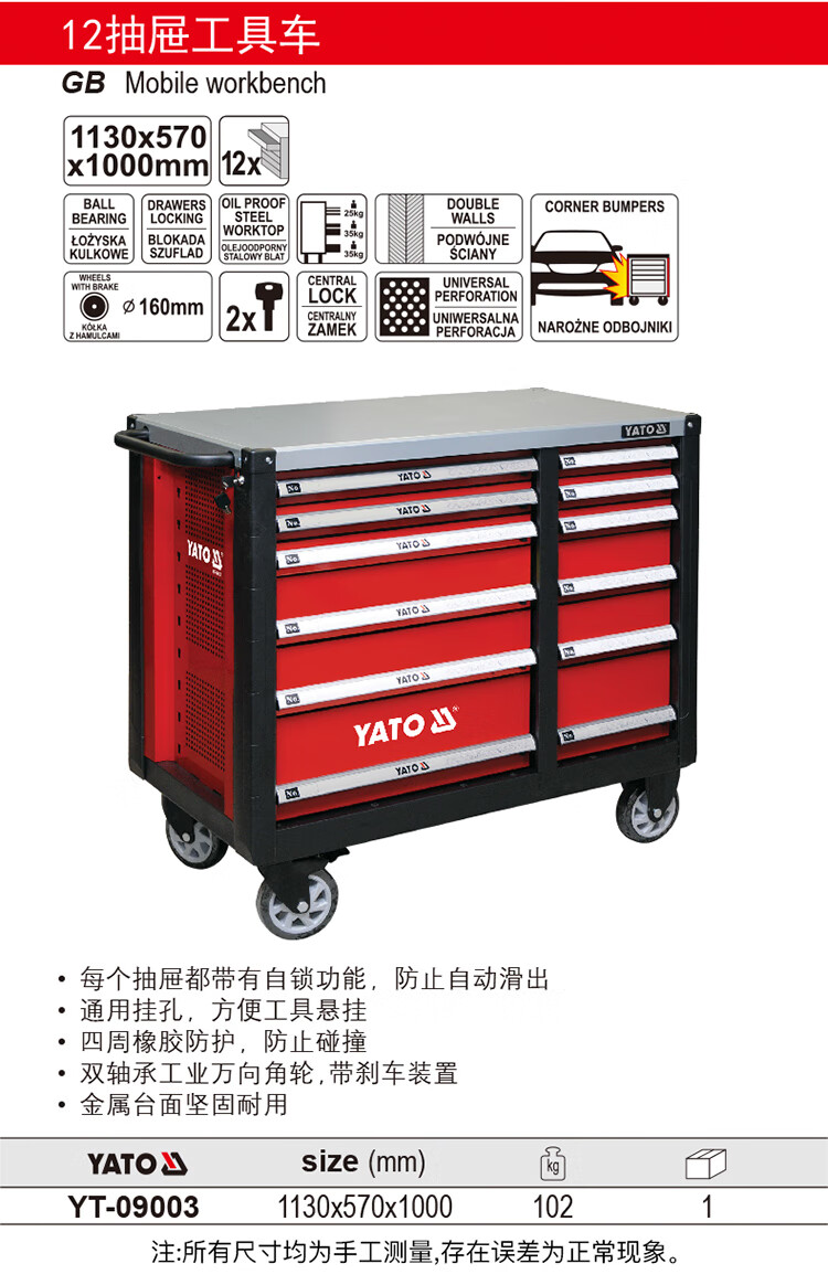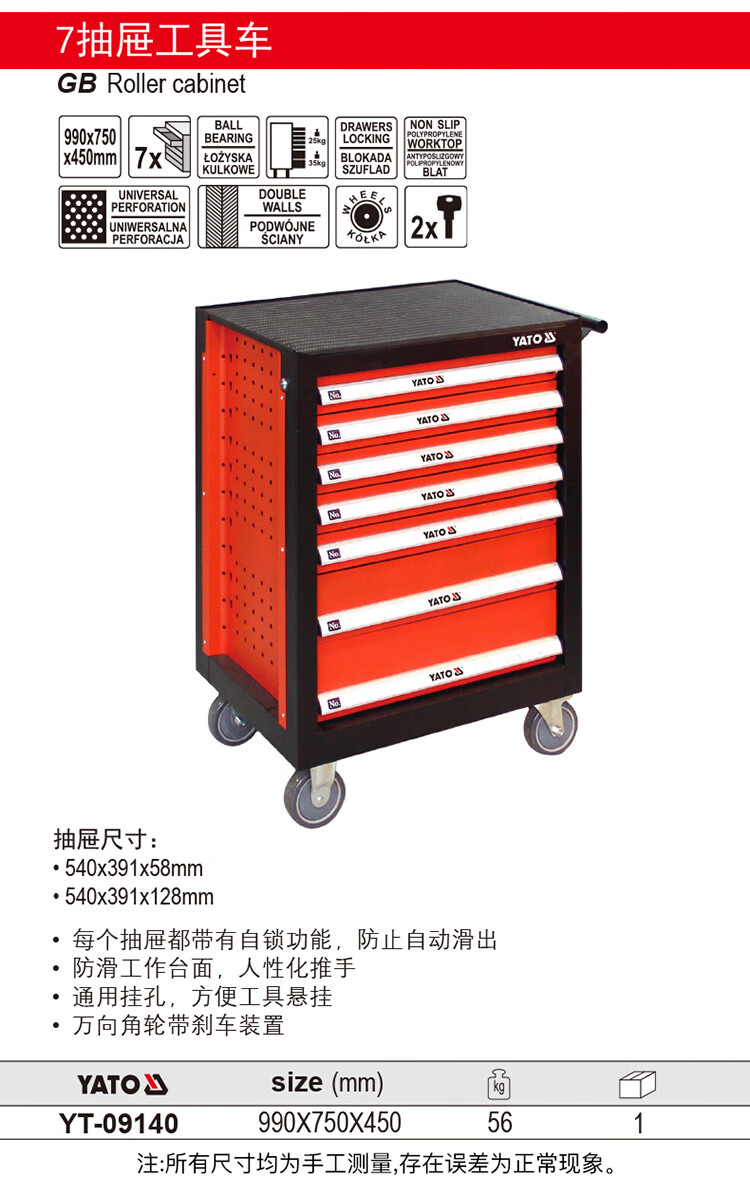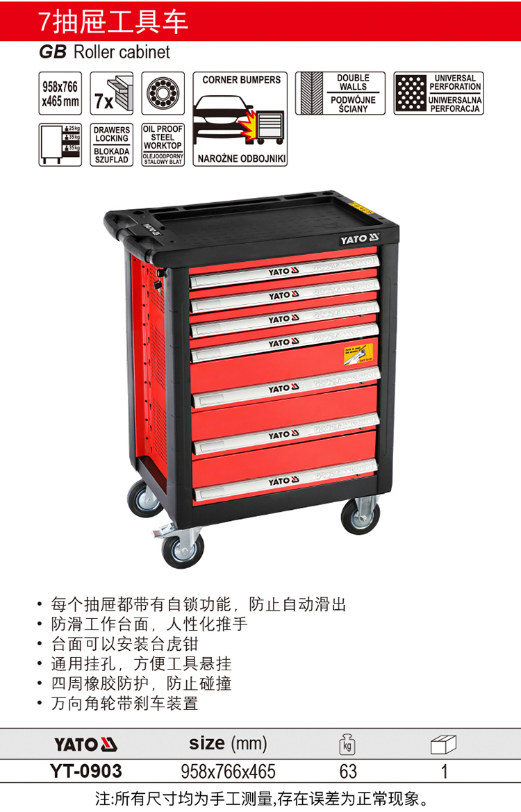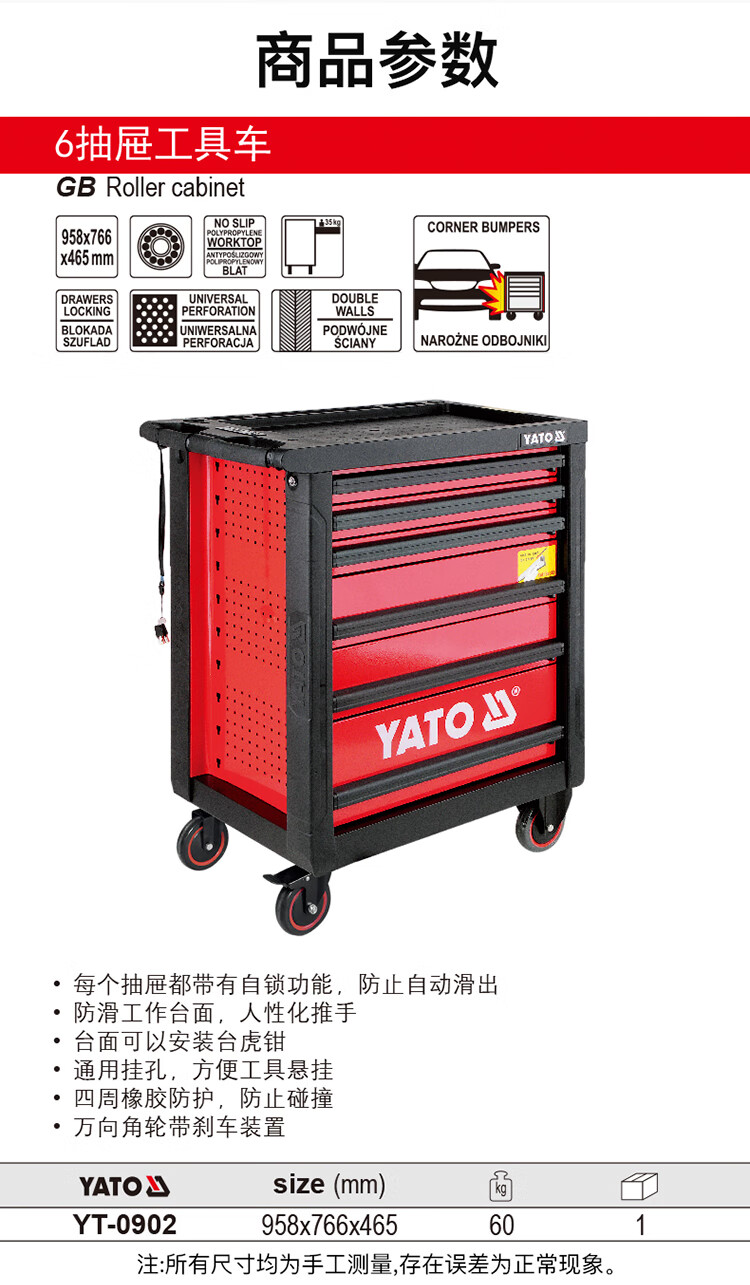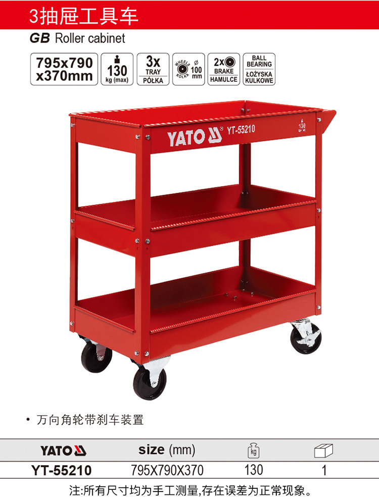 易尔拓 YATO 3抽屉工具车 795x790x370mm 把 YT-55210