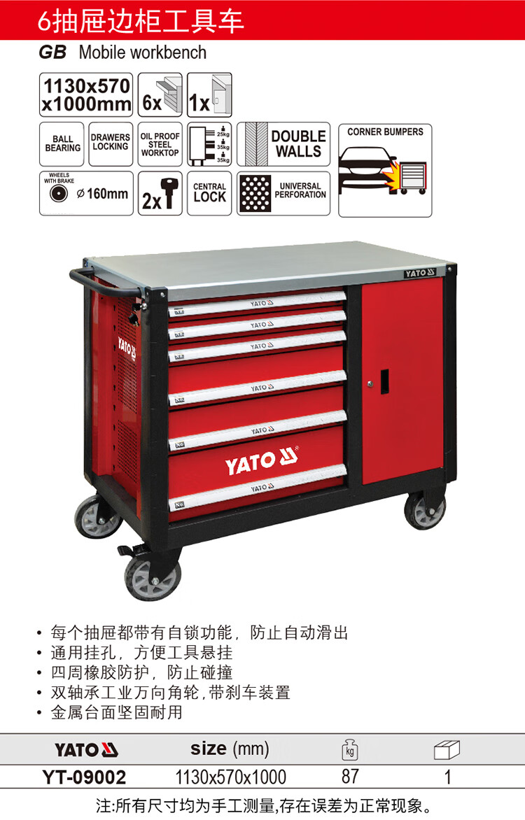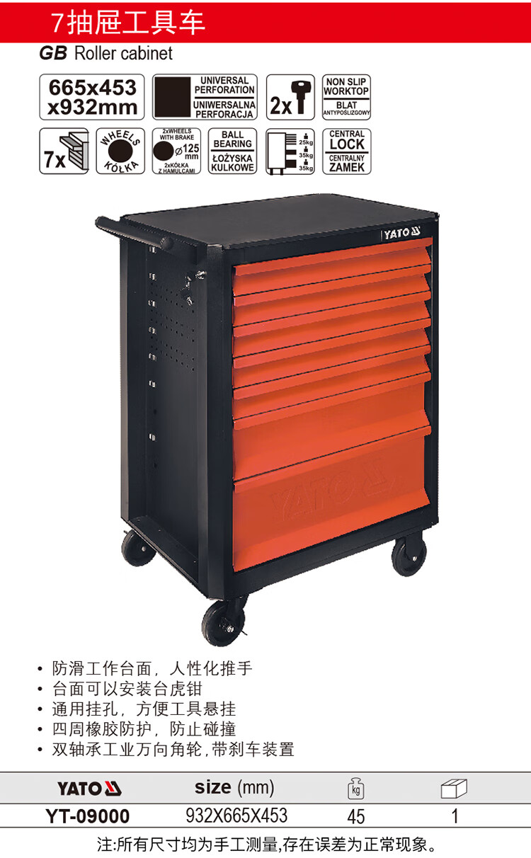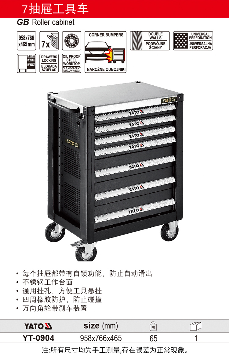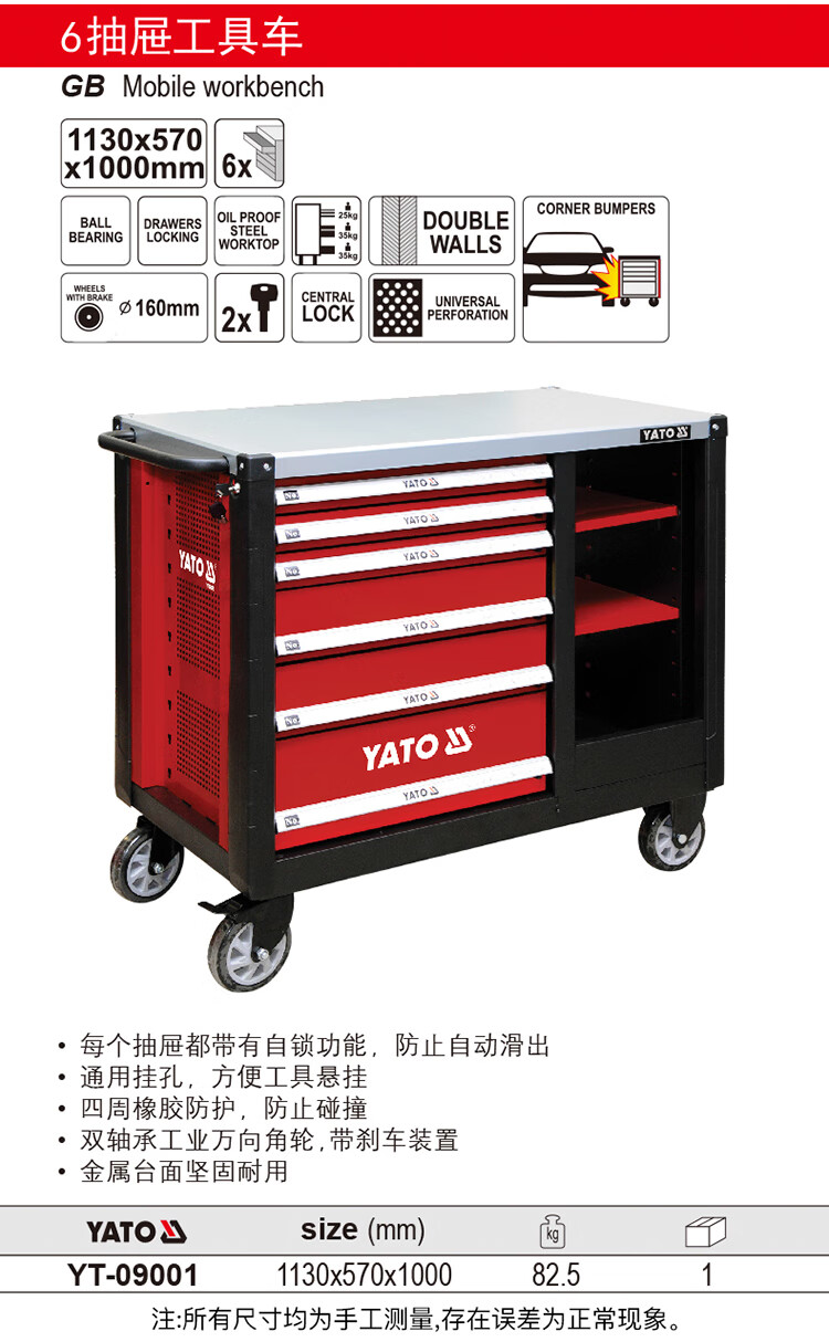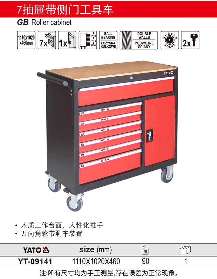 易尔拓 YATO 3抽屉工具车 795x790x370mm 把 YT-55210