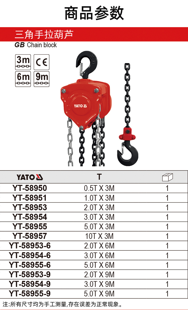 易尔拓 YATO 三角手拉葫芦 3MX5.0T 套 YT-58955