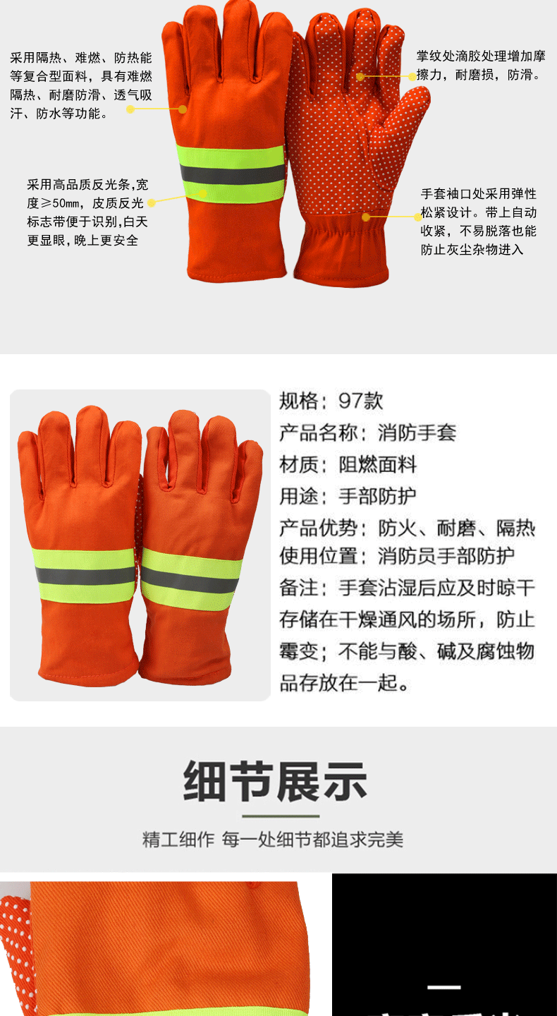 谋福 144 97式手套阻燃防火隔热手套加厚防水透气微型消防站配 加厚带点珠款2025 加厚带点珠款