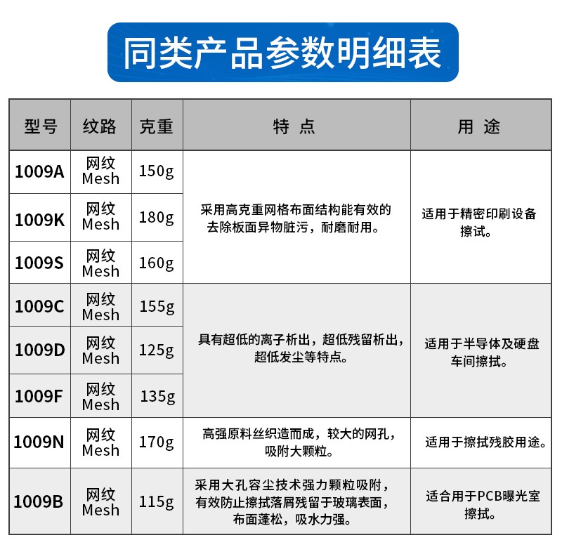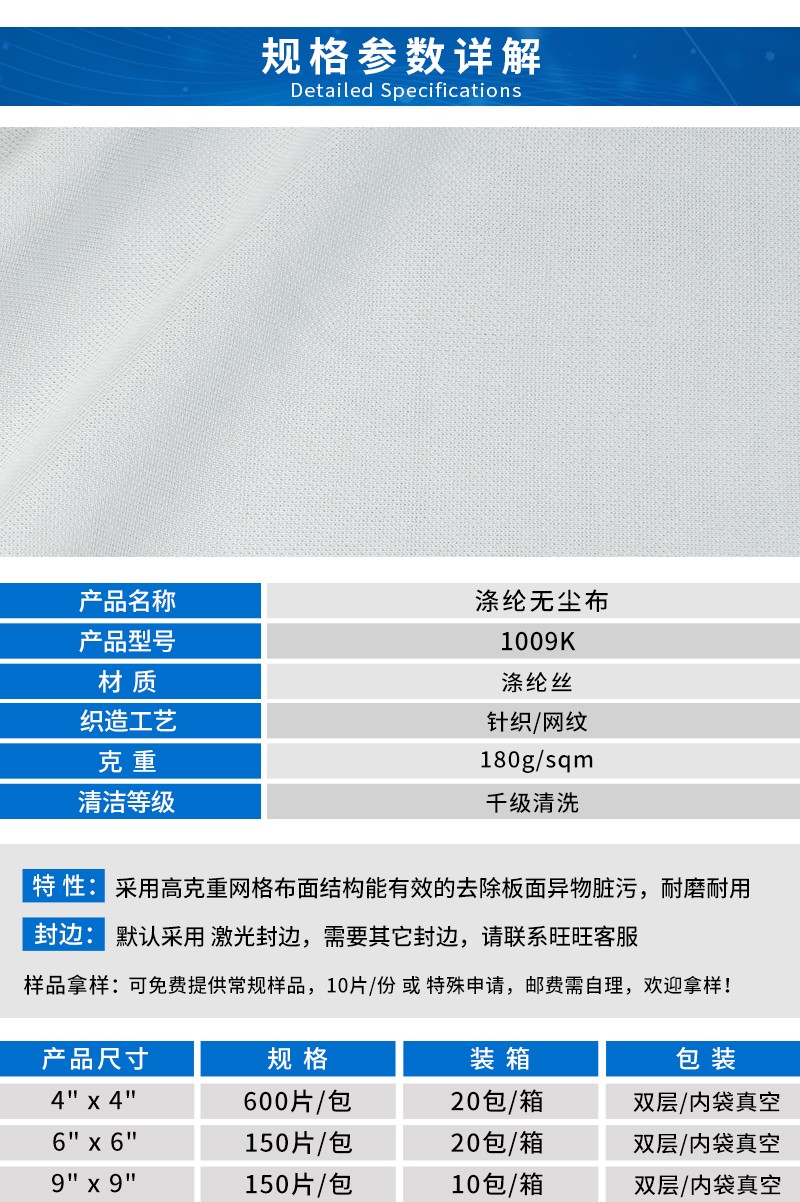 SUOREC(硕源)涤纶无尘布 1009K网纹 180g/m² 9"*9"/150片/包