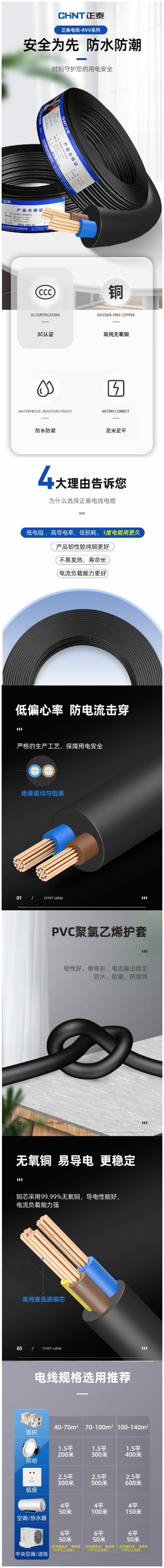 CHINT/正泰 铜芯聚氯乙烯绝缘聚氯乙烯护套软电线 RVV-300/500V-2×16 护套黑色 100m/卷