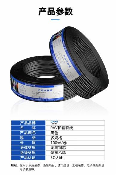 CHINT/正泰 铜芯聚氯乙烯绝缘聚氯乙烯护套软电线 RVV-300/500V-8×6 护套黑色 100m/卷