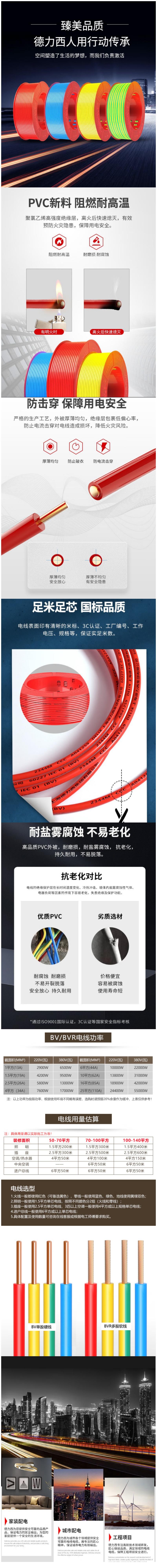DELIXI/德力西 铜芯聚氯乙烯绝缘布电线 BV-450/750V-1×6 红色 100m/卷